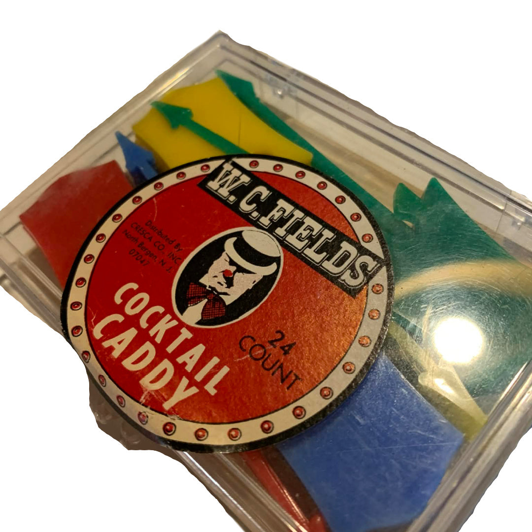 24 WC Fields Multicolored Plastic Cocktail Stirring Swizzle Sticks in Box 1960s