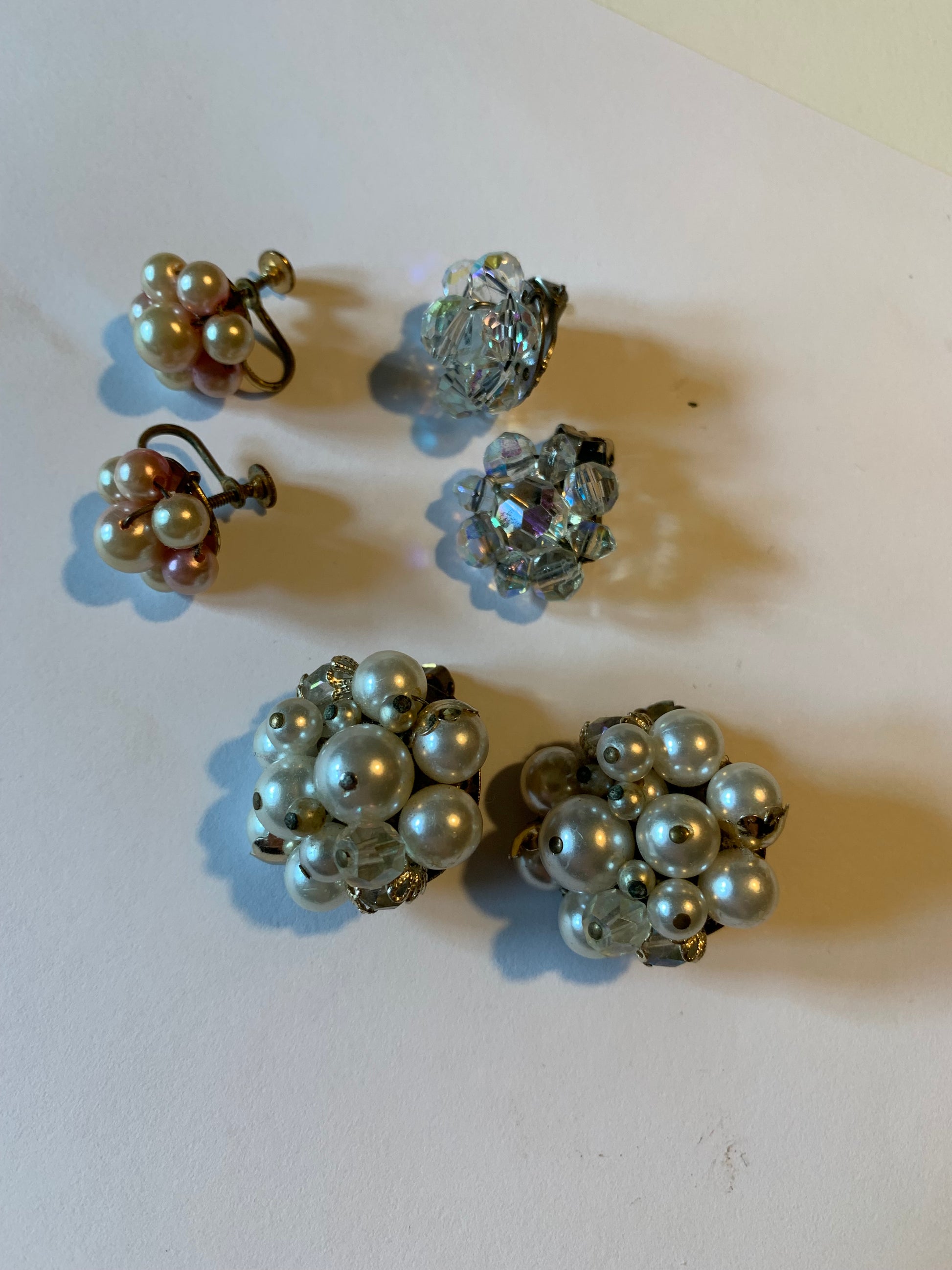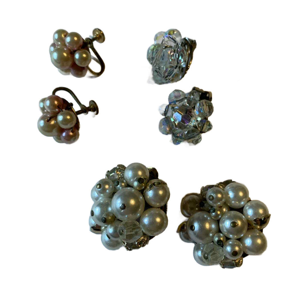 Beads and Faux Pearls Button Clip Earrings Lot circa 1960s
