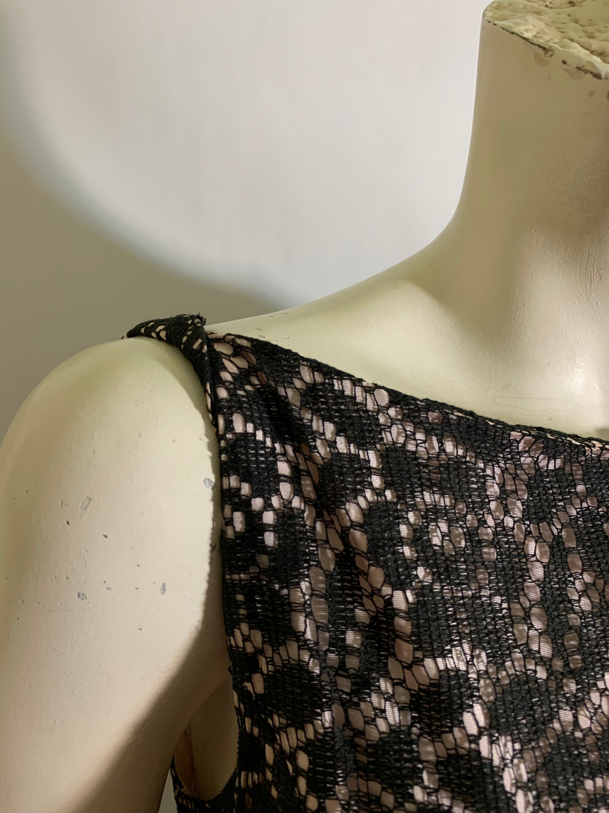 Black and Pink Illusion Lace Full Skirt Dress circa 1960s