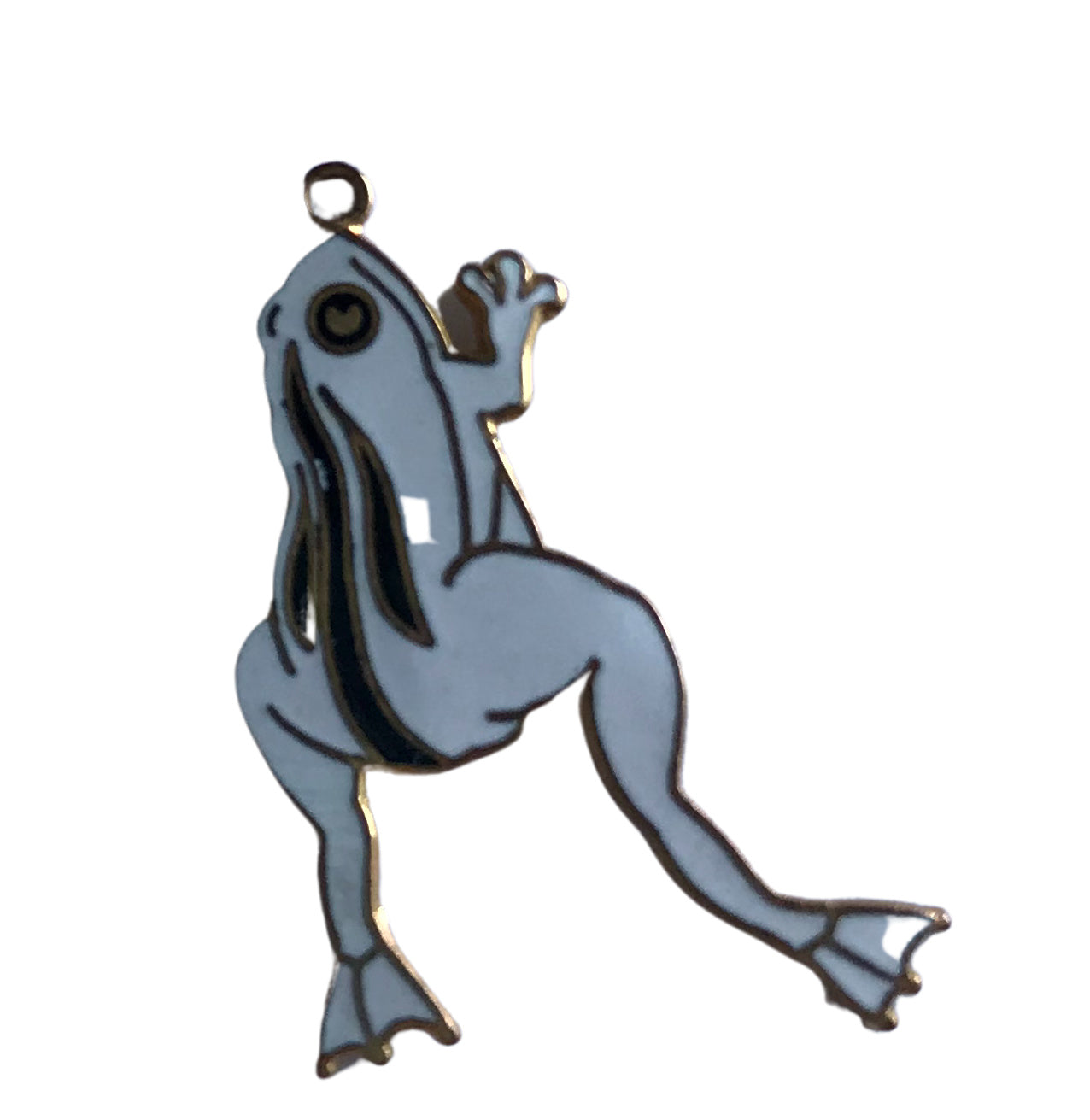 Black and White Enameled Metal Frog Pendant circa 1980s