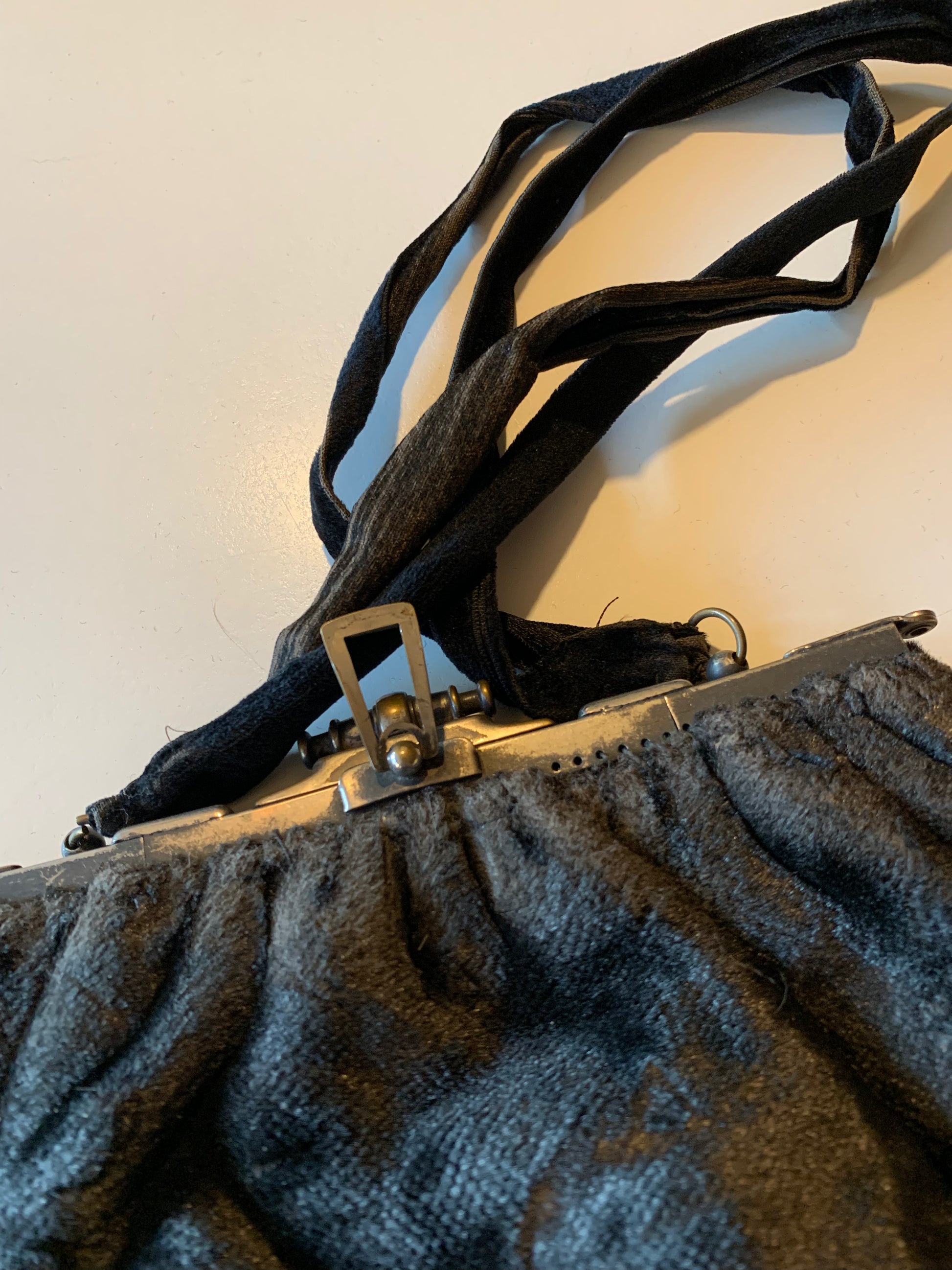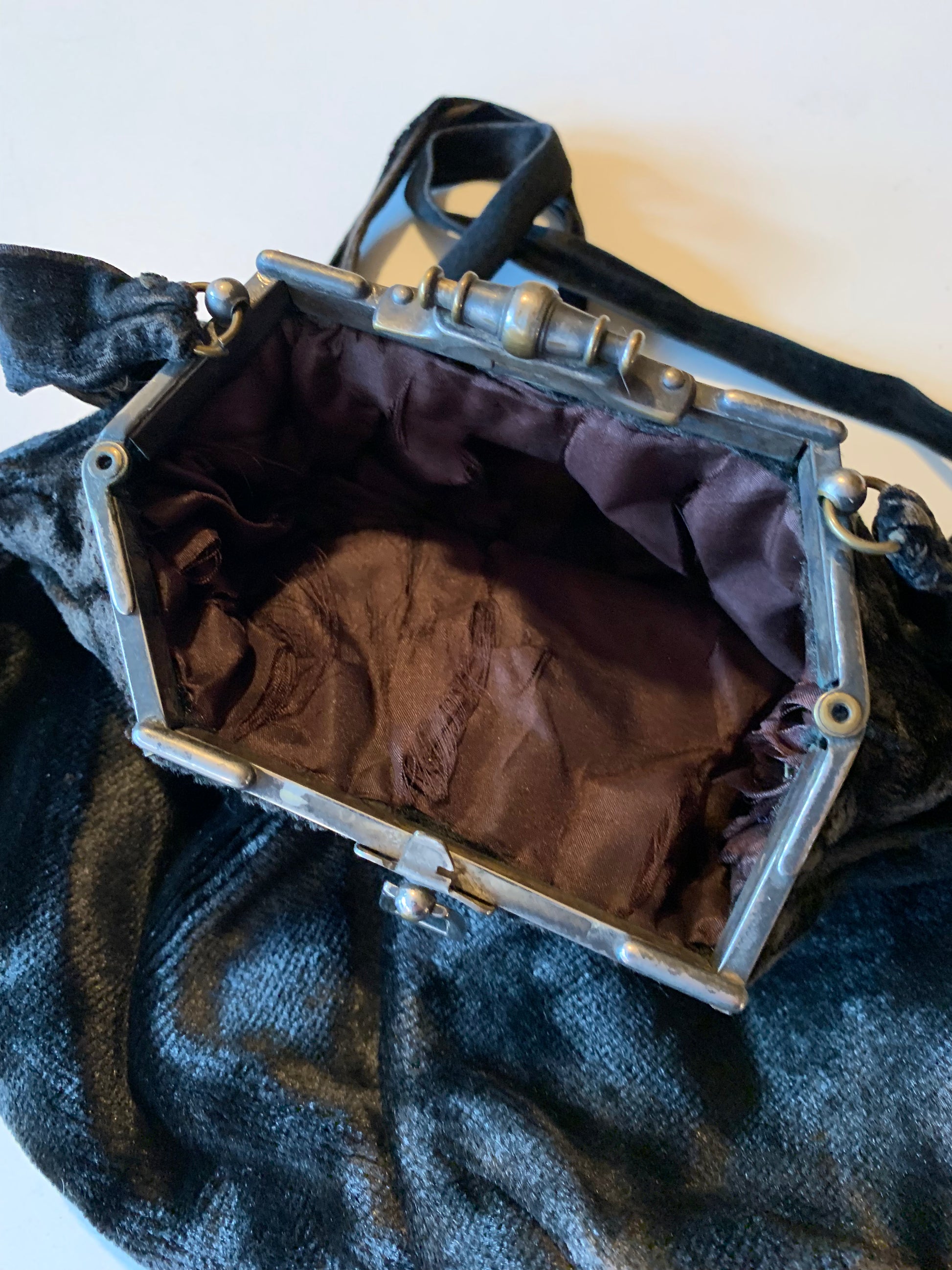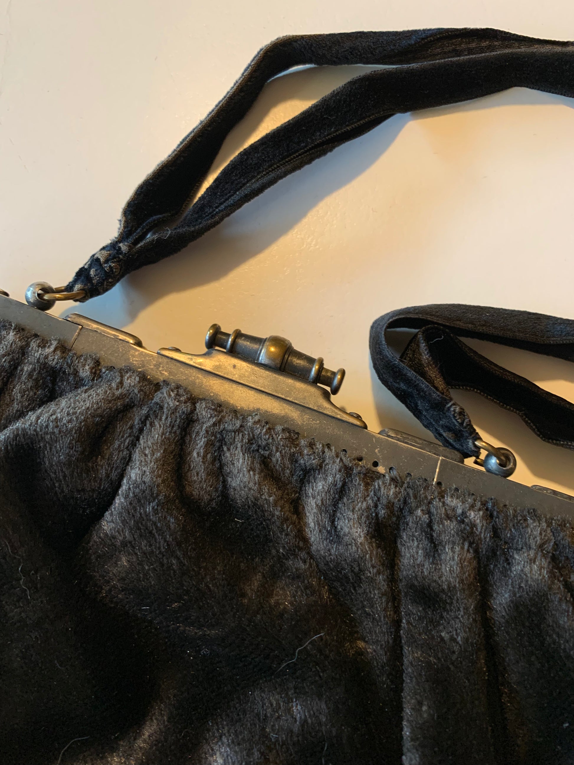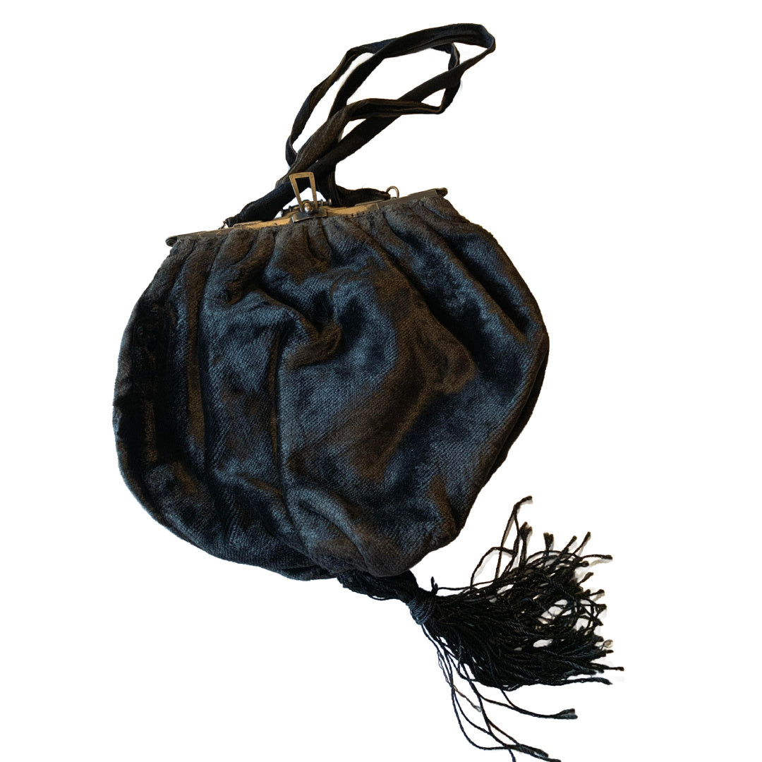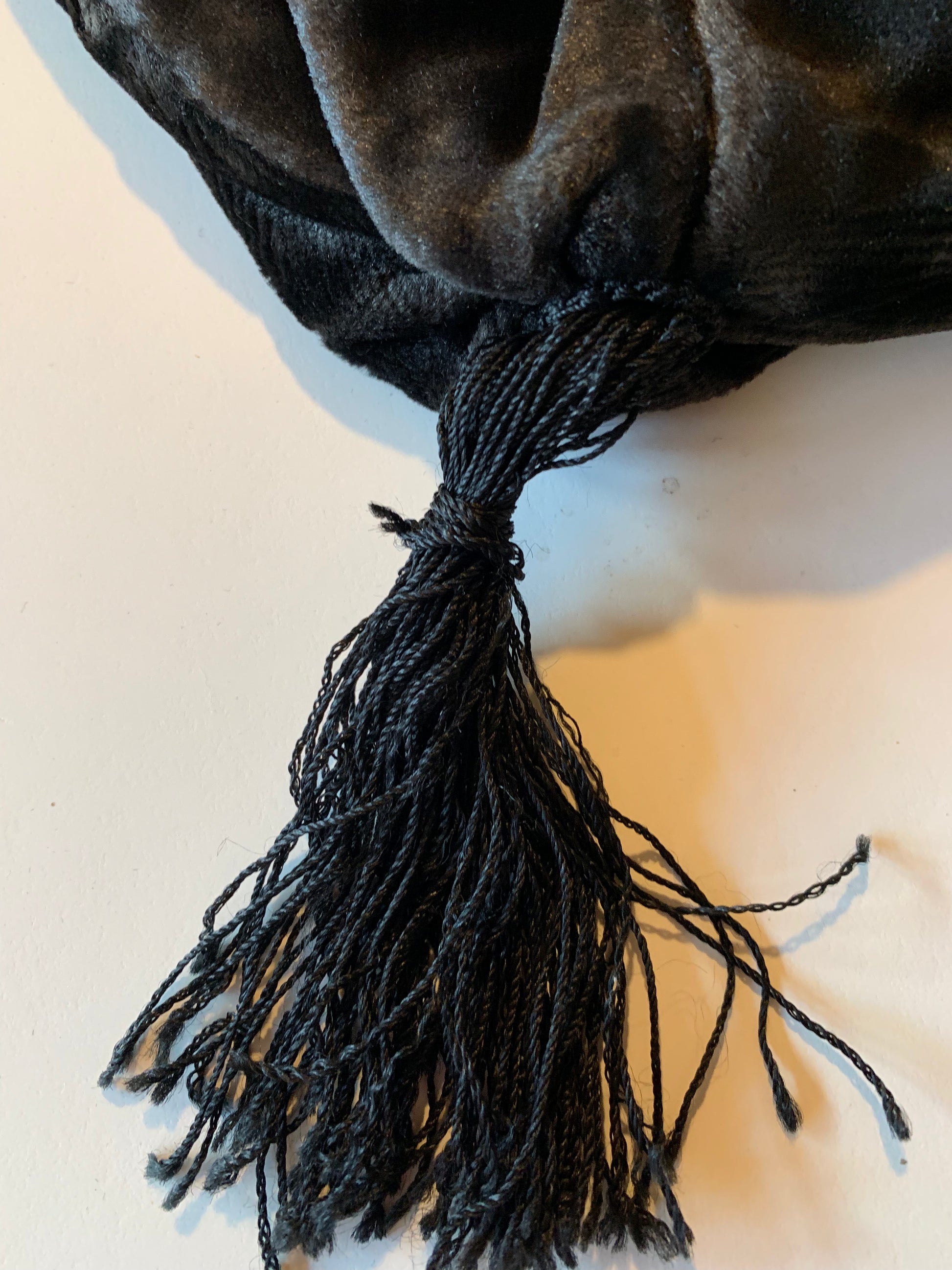 Black Cotton Velvet Folding Frame Handbag with Tassel circa 1890s