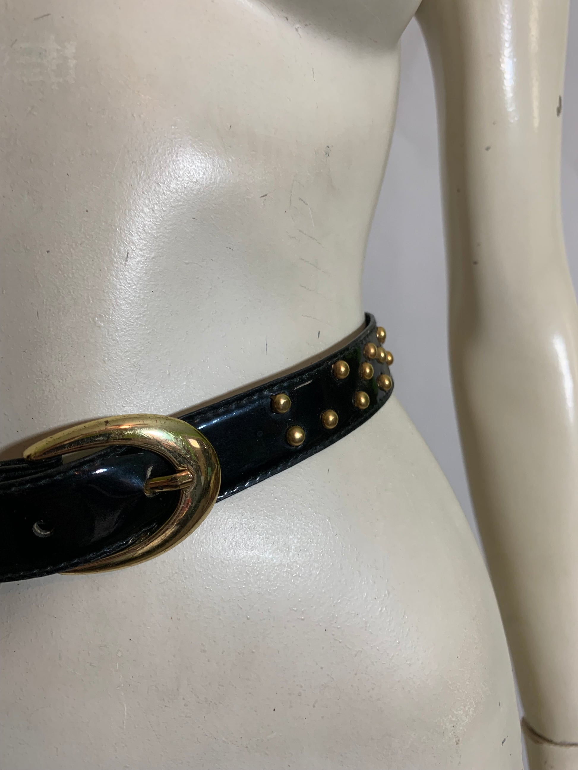Black Patent Skinny Vinyl Belt with Gold Metal Studs circa 1980s