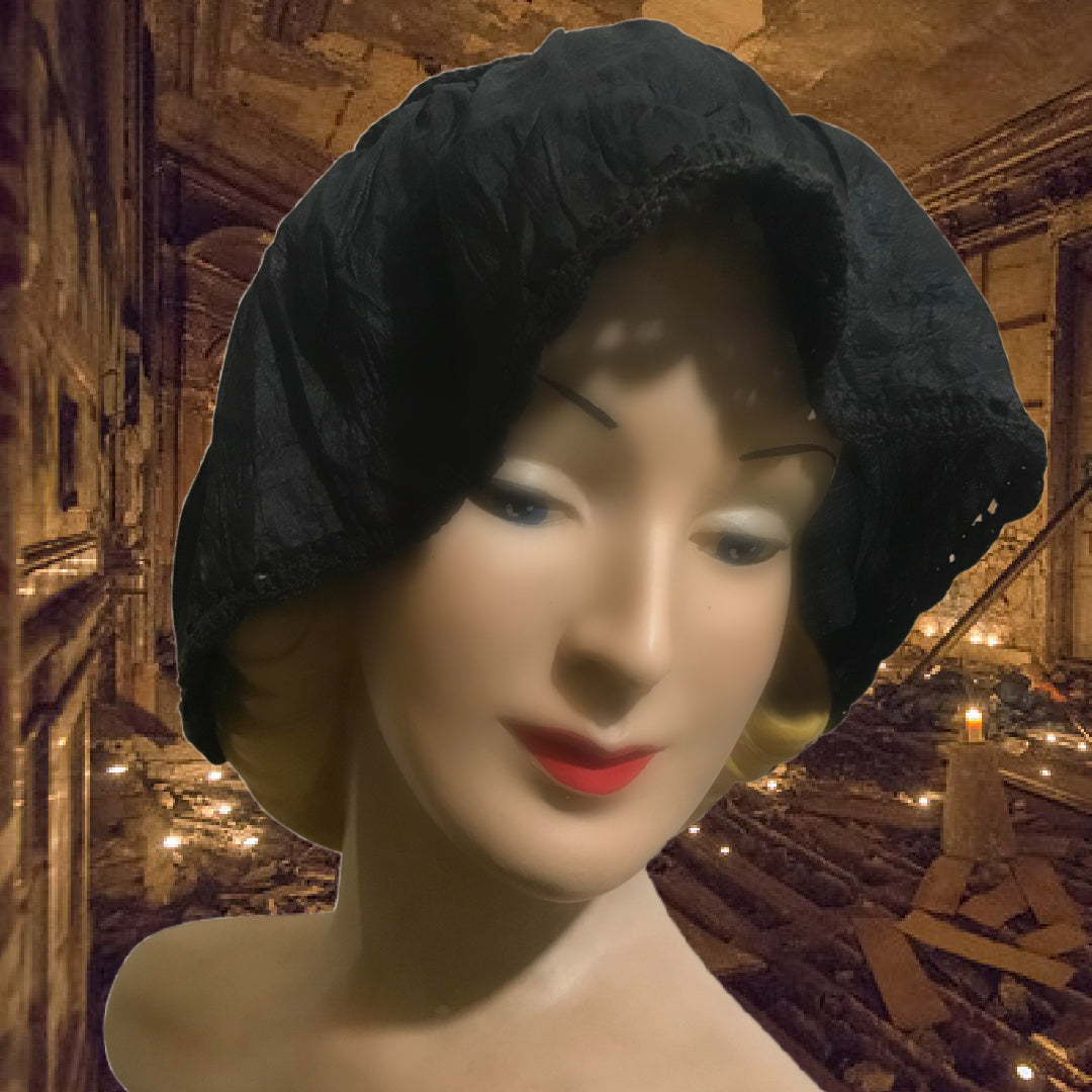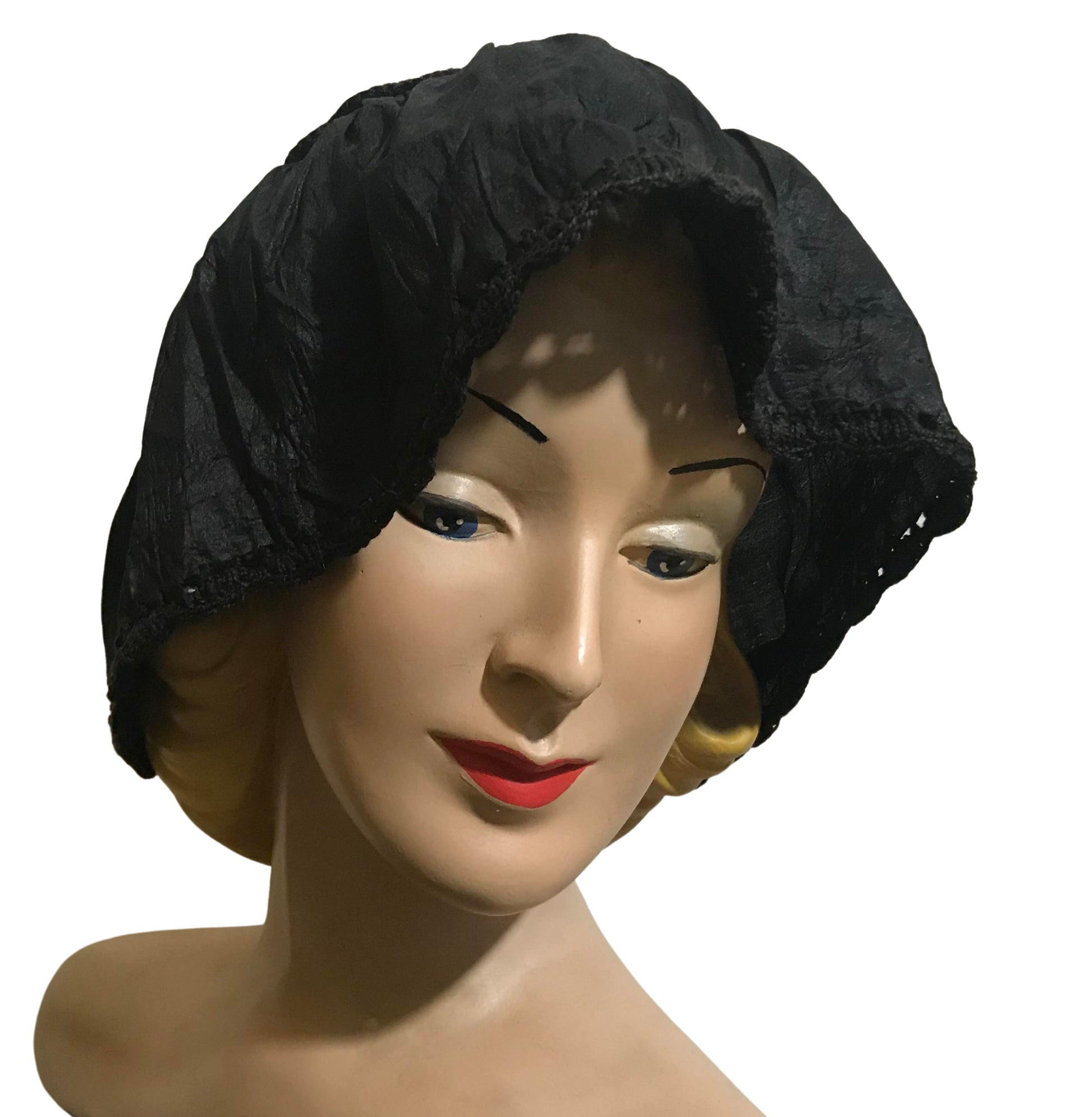 Black Silk Crocheted Crown MOB Cap Hat circa Early 1900s