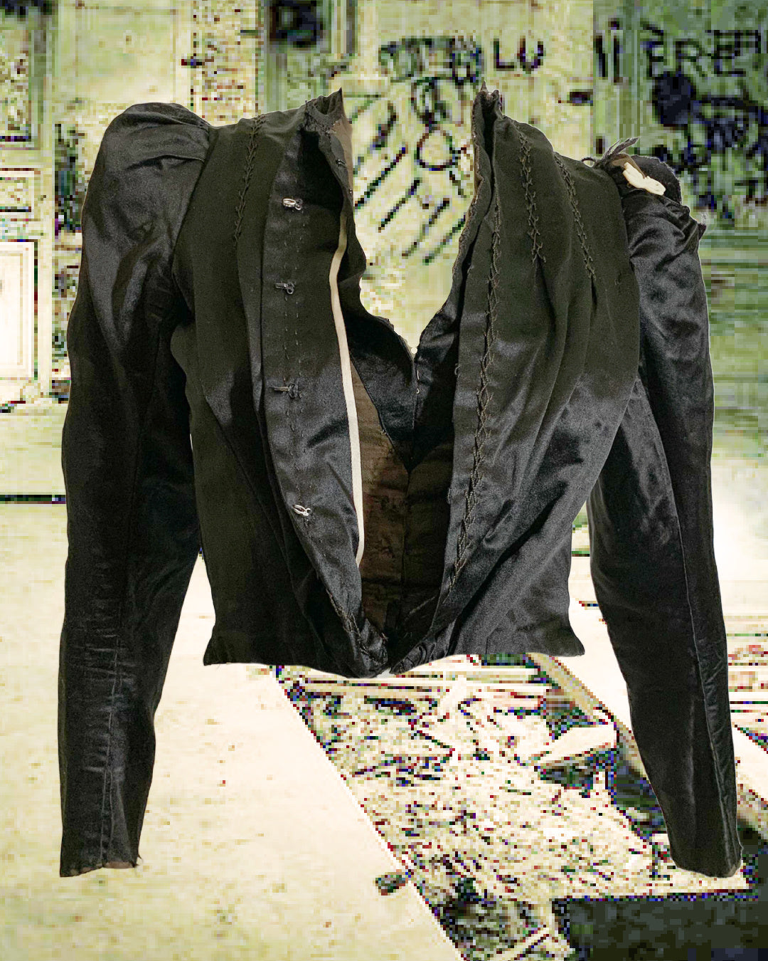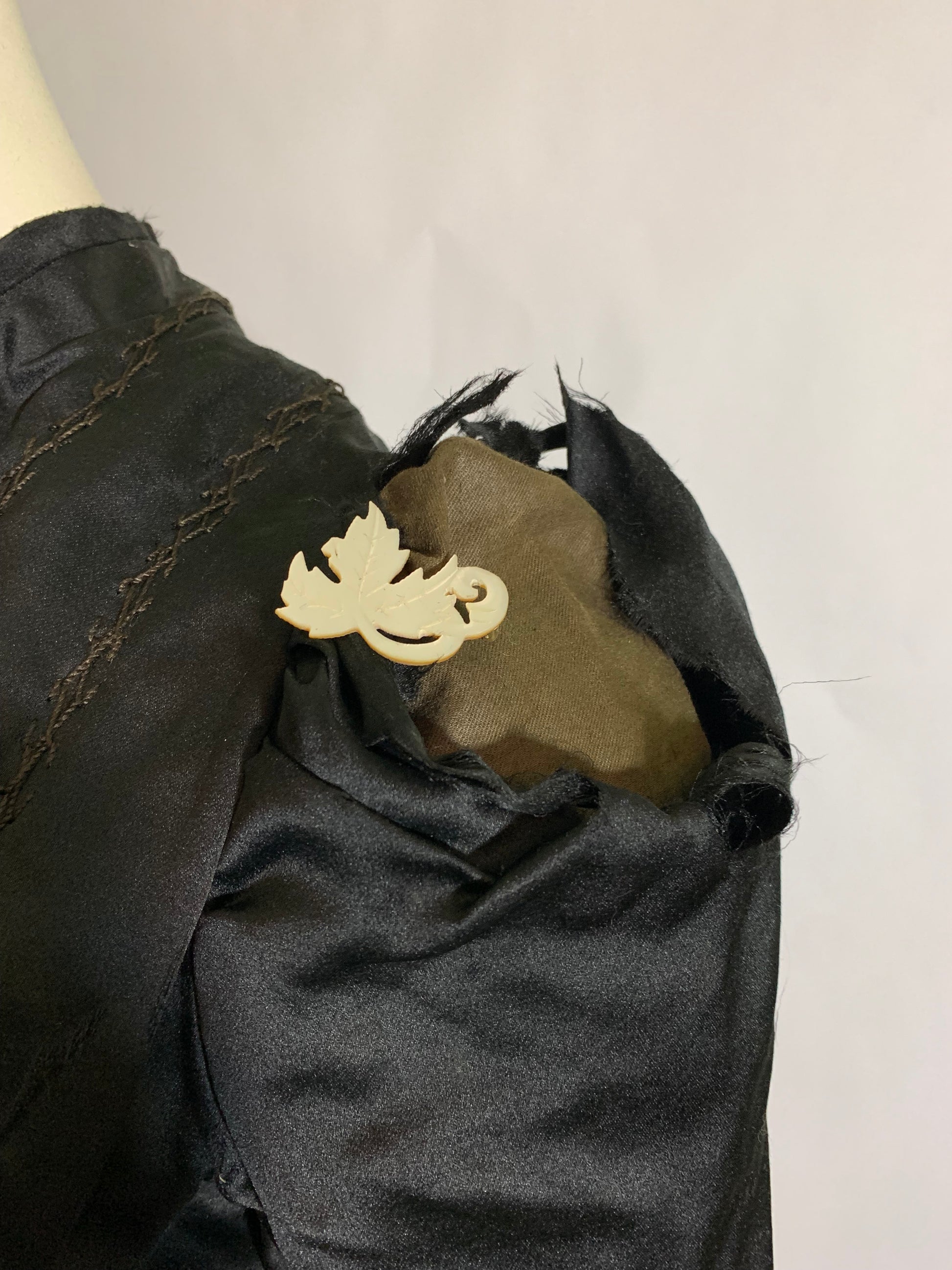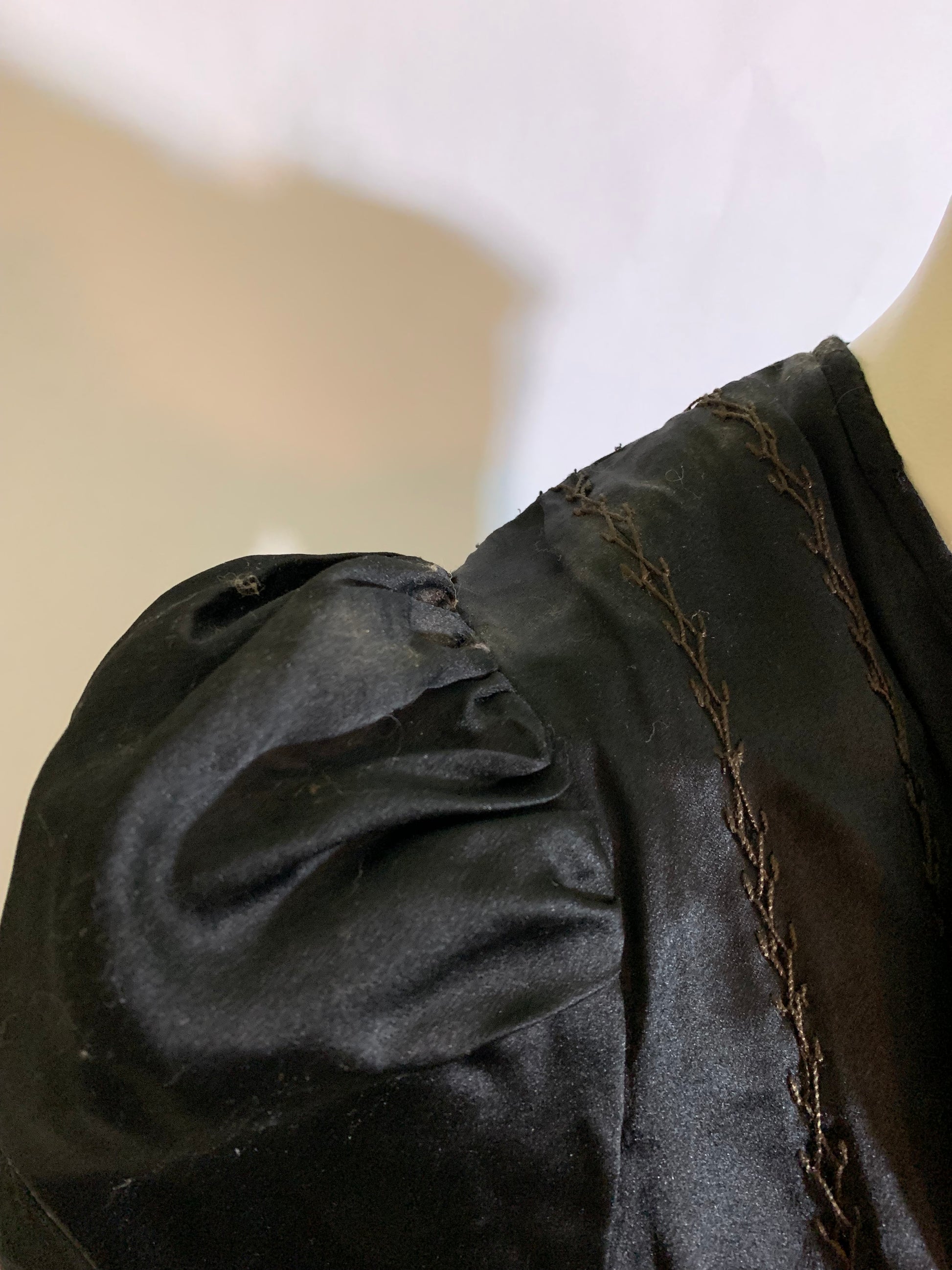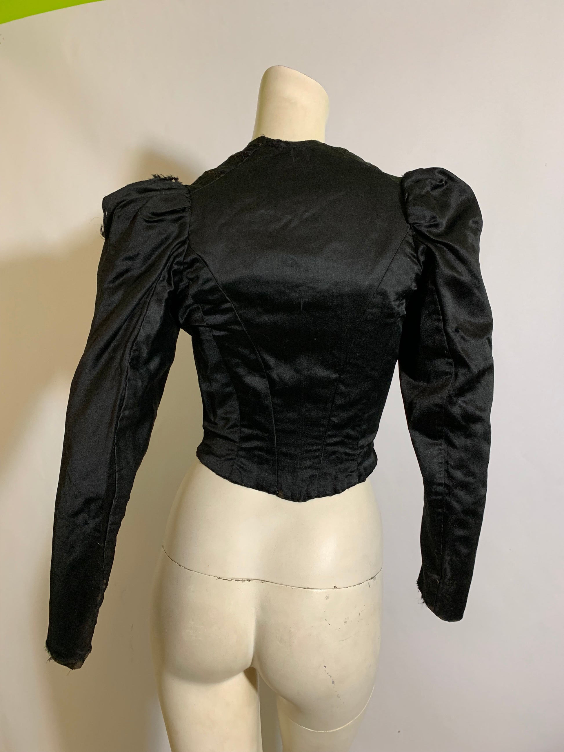 Black Silk Hook Front Puff Shoulder Bodice circa 1890s