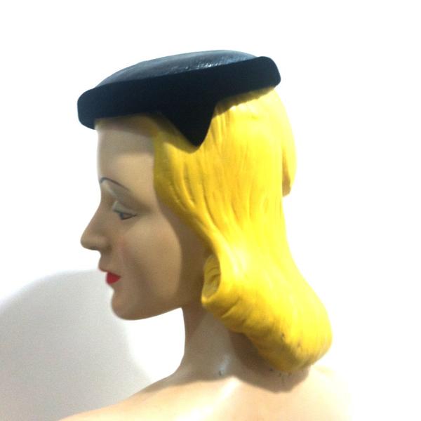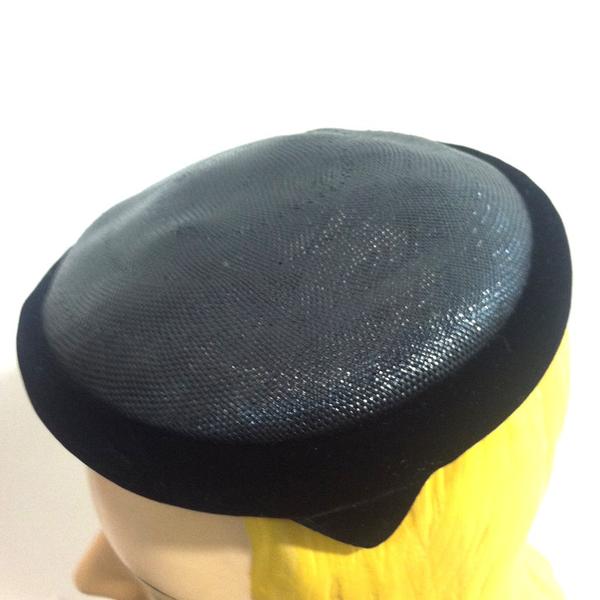 Black Sisal and Velvet Cocktail Hat with Side Tab circa 1950s
