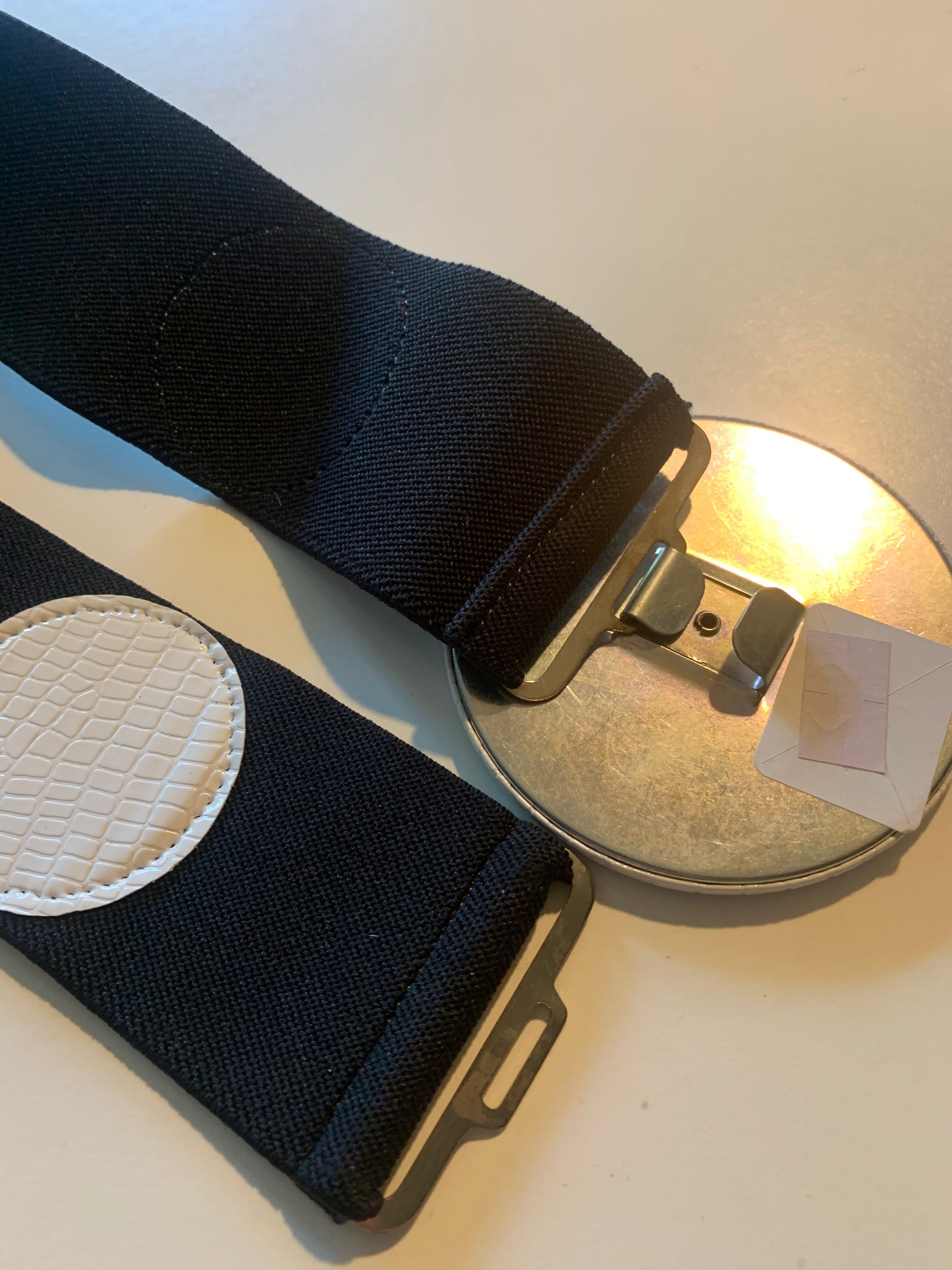 Black Wide Elastic New Wave Belt with Vinyl Dots and Circle Clasp circa 1980s
