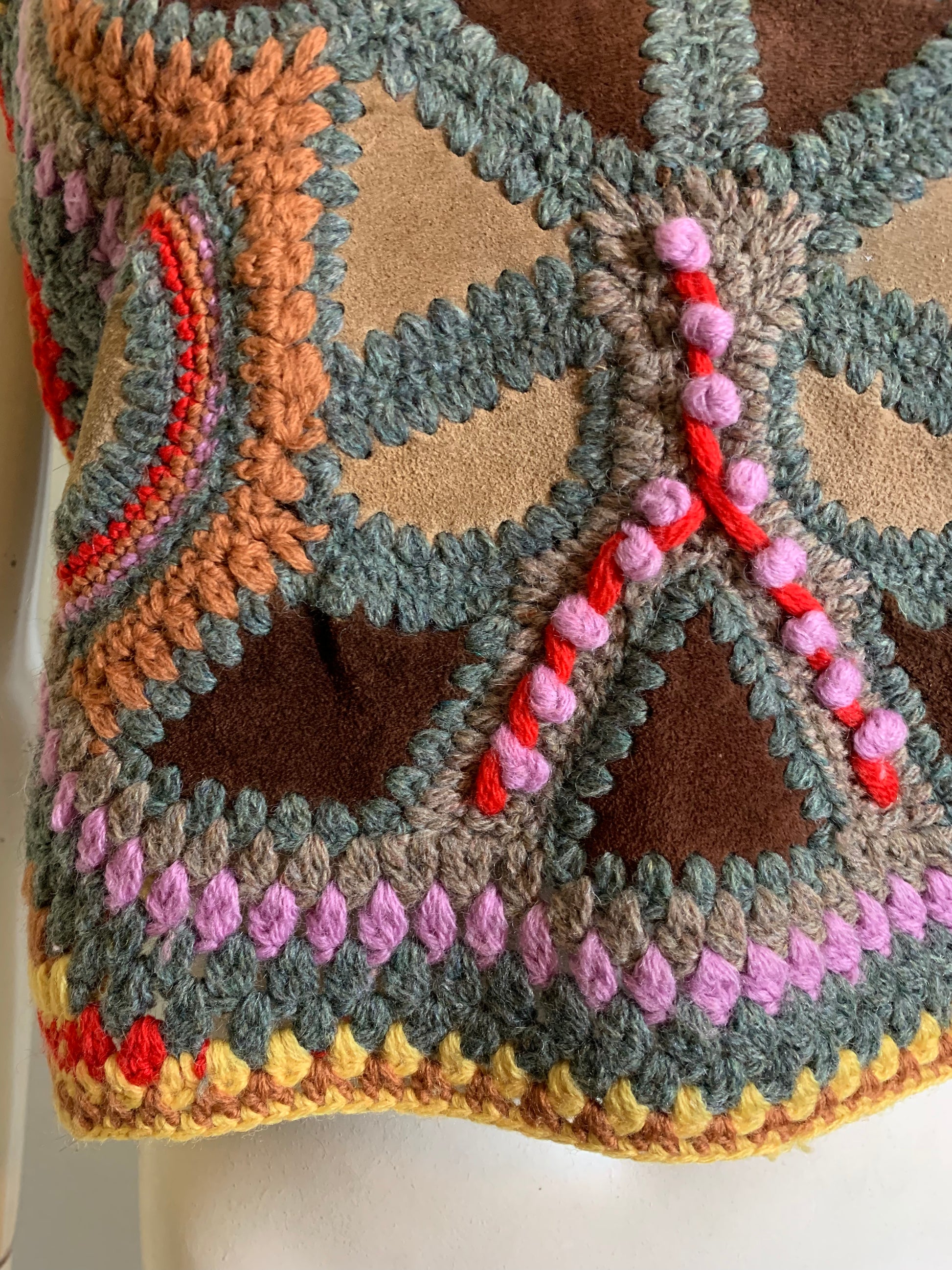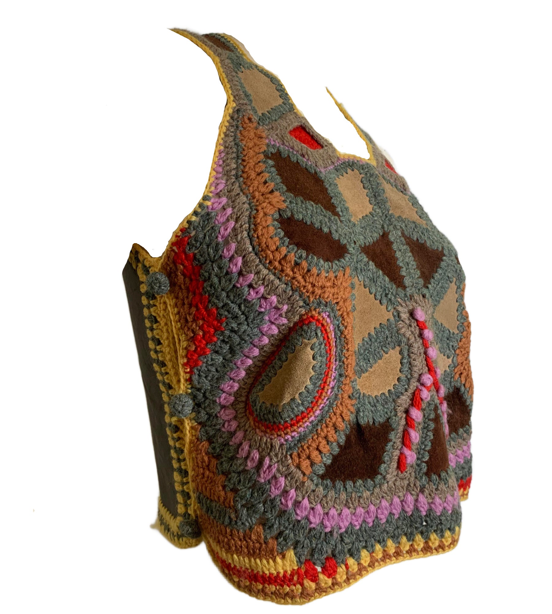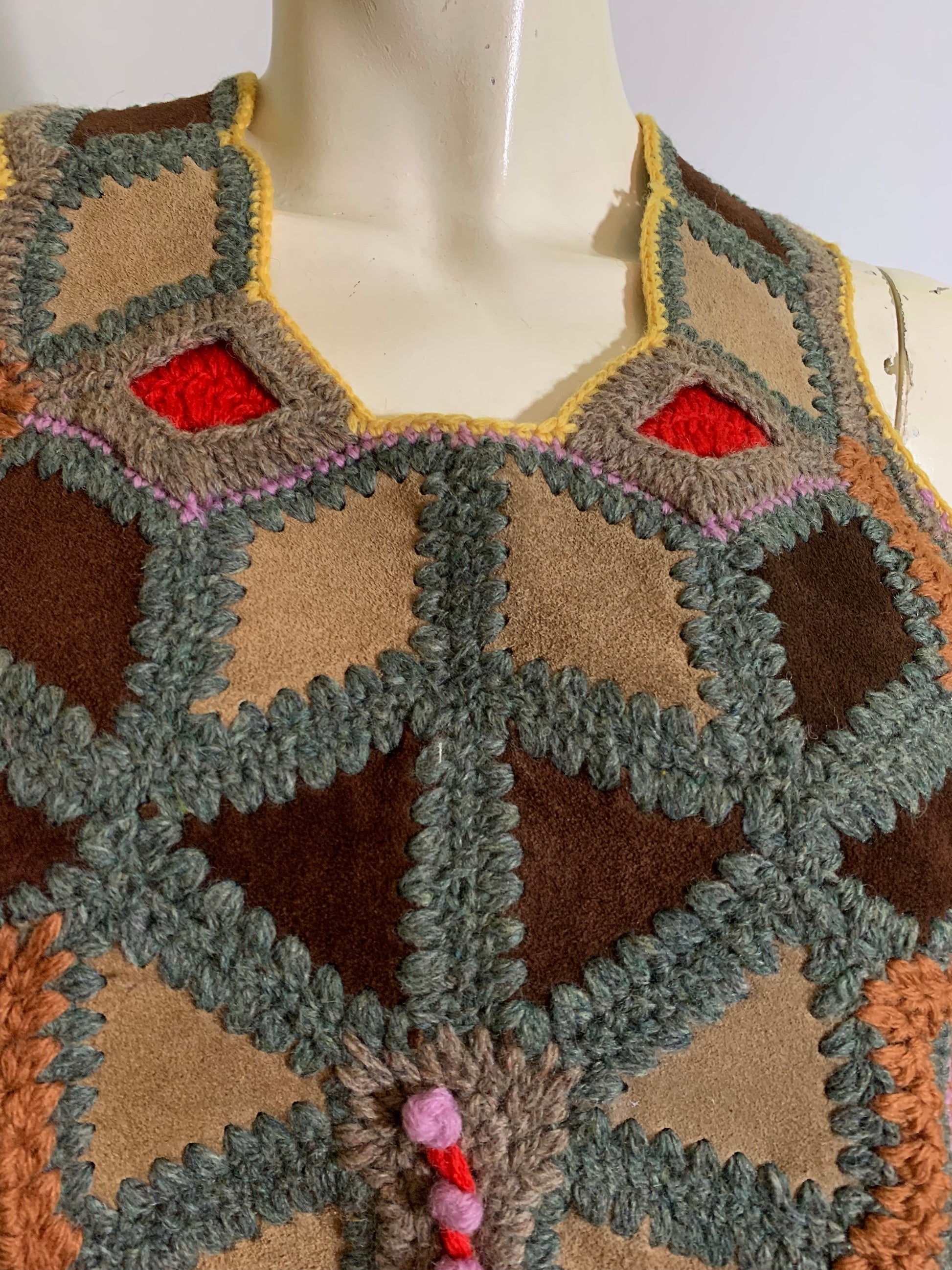 Bohemian Crocheted Leather and Suede Button Side Vest circa 1970s Halston