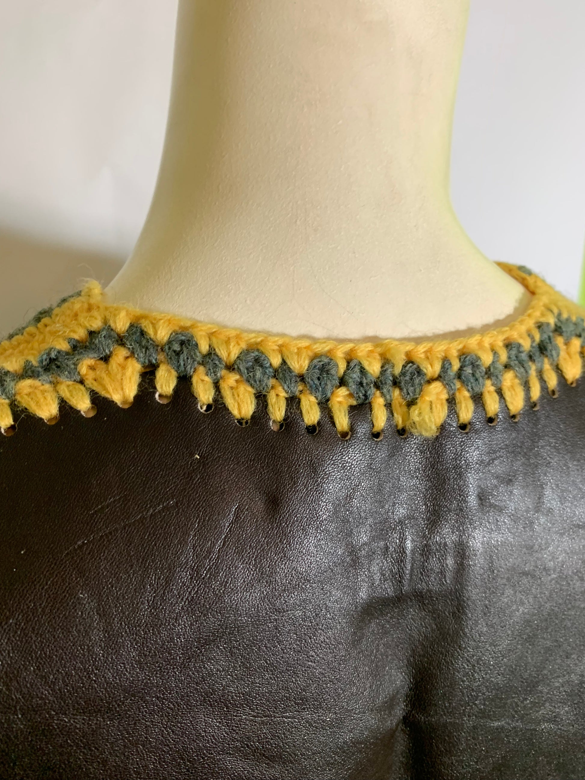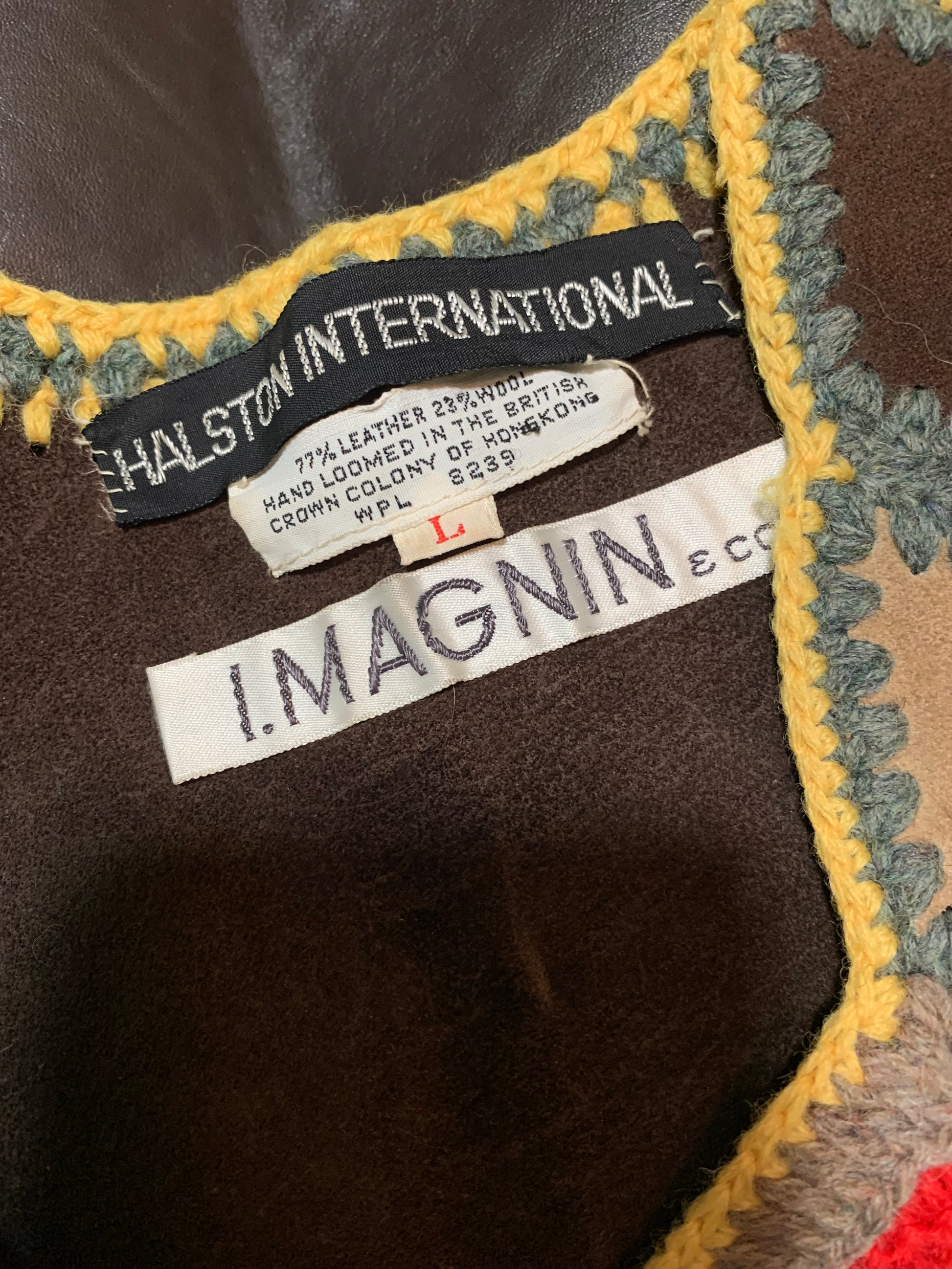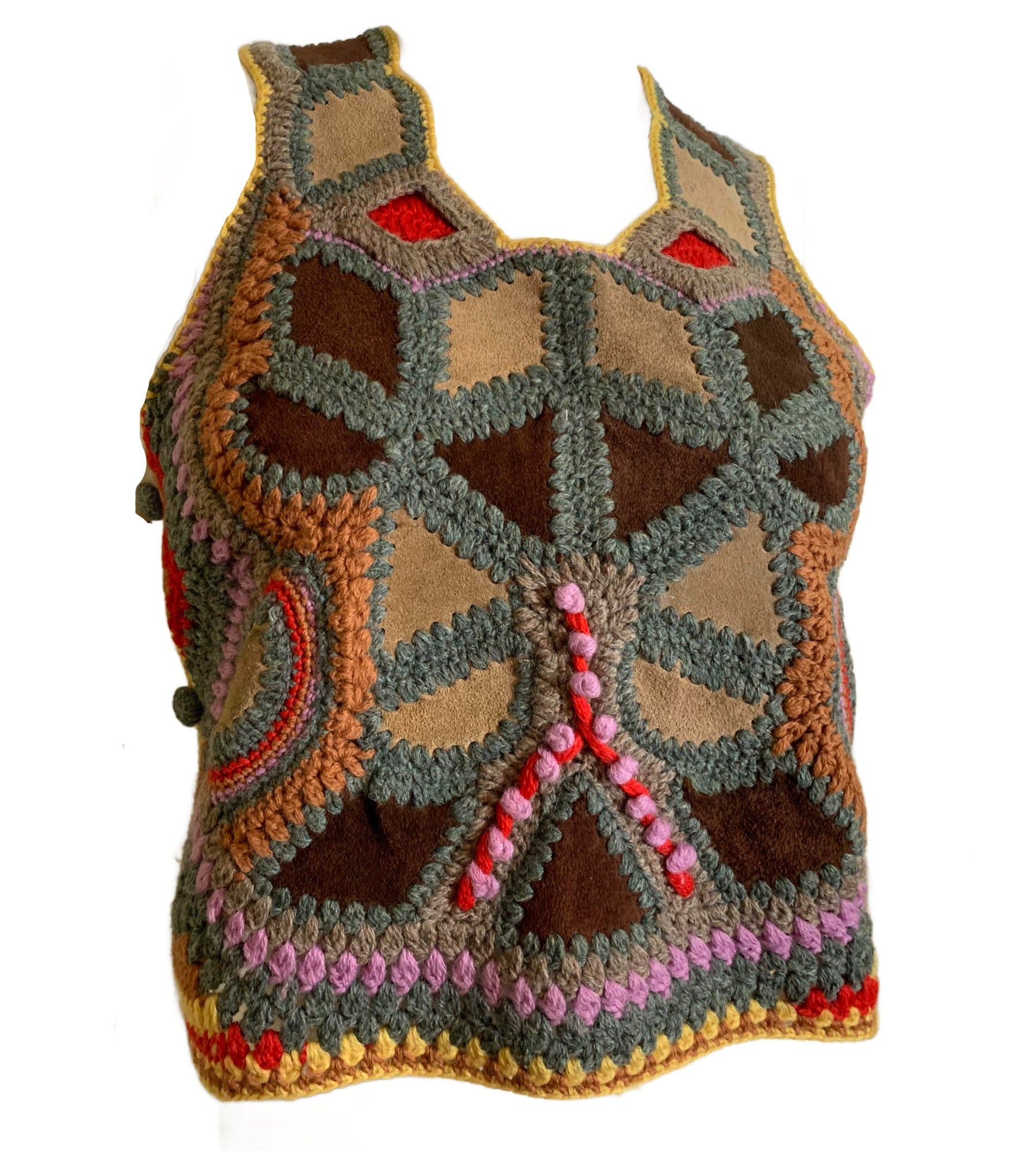 Bohemian Crocheted Leather and Suede Button Side Vest circa 1970s Halston
