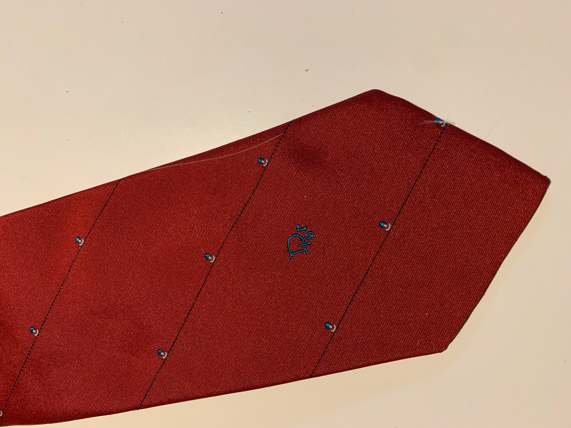 1990s brick red and blue Dior tie , poly silk blend, no flaws