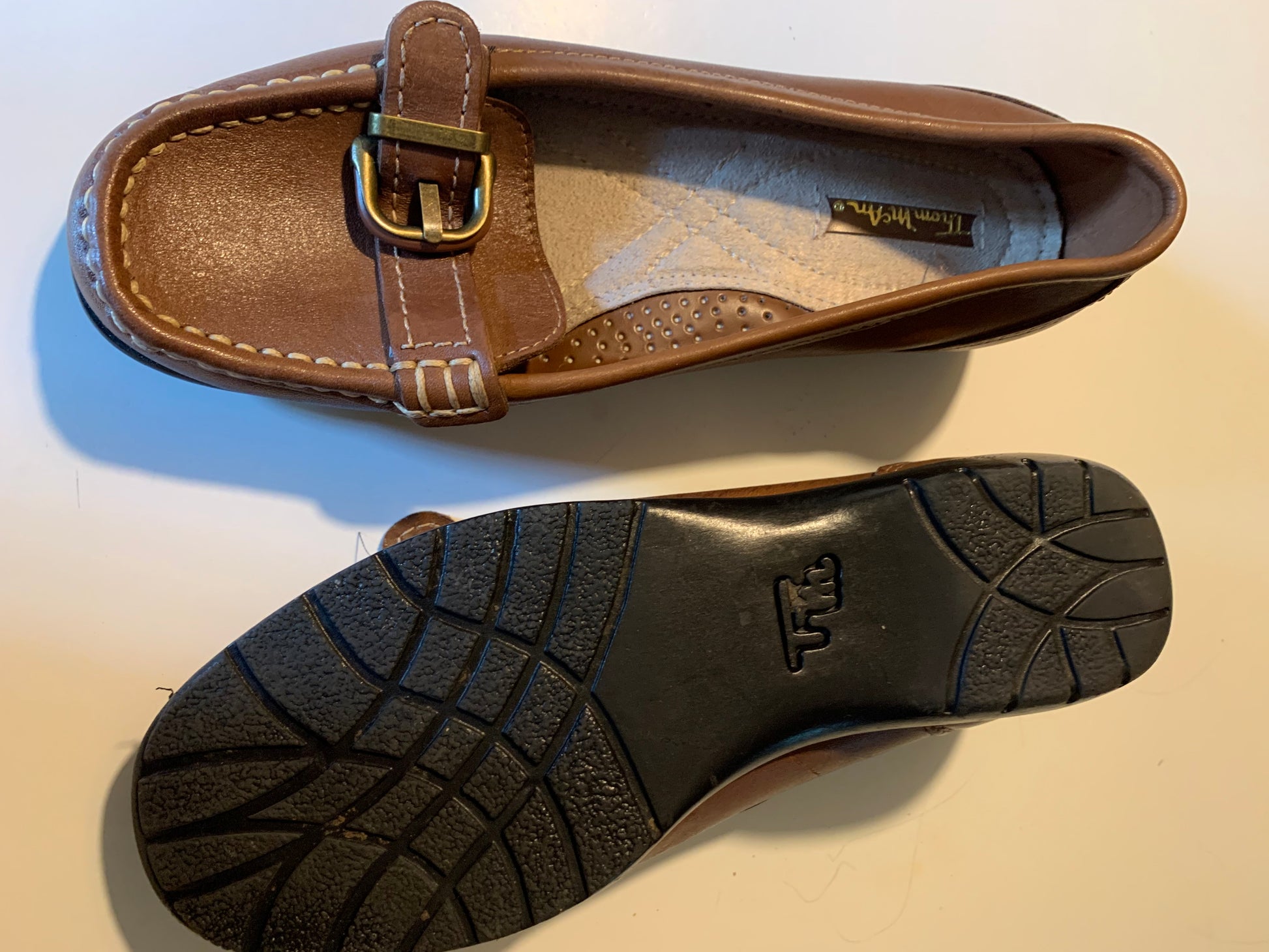 Iconic 1980s brown leather loafers by Thom McAn. US size 6W, minimal wear.