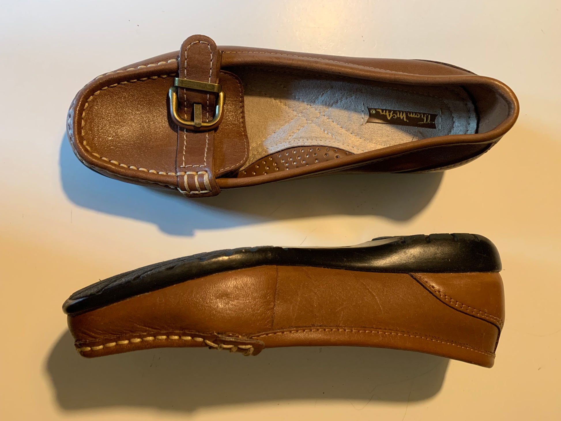 Classic Little Brown Buckle Topped Loafers circa 1980s sz 6