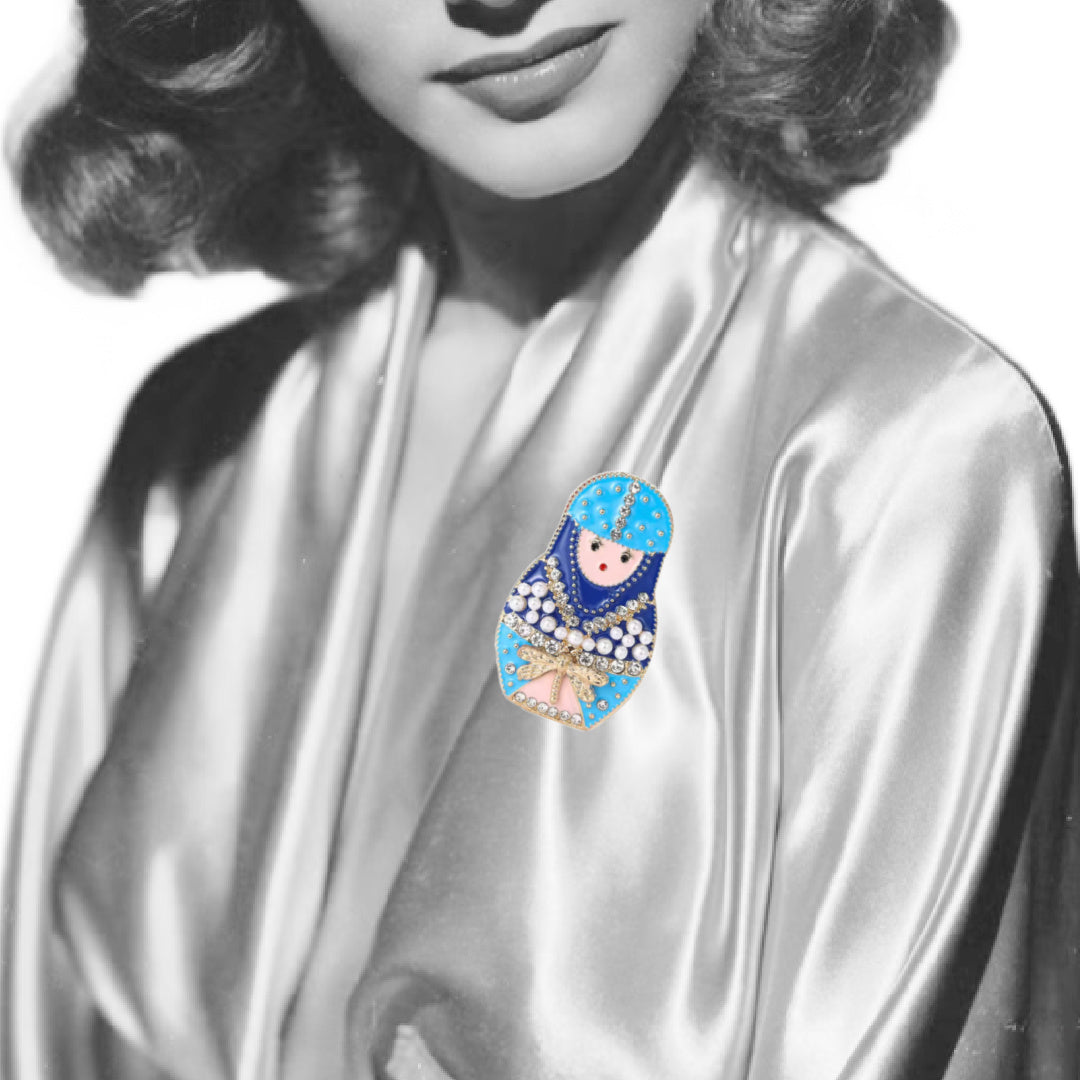 Colorful Matroyshka Nesting Doll Brooch 2 Colors