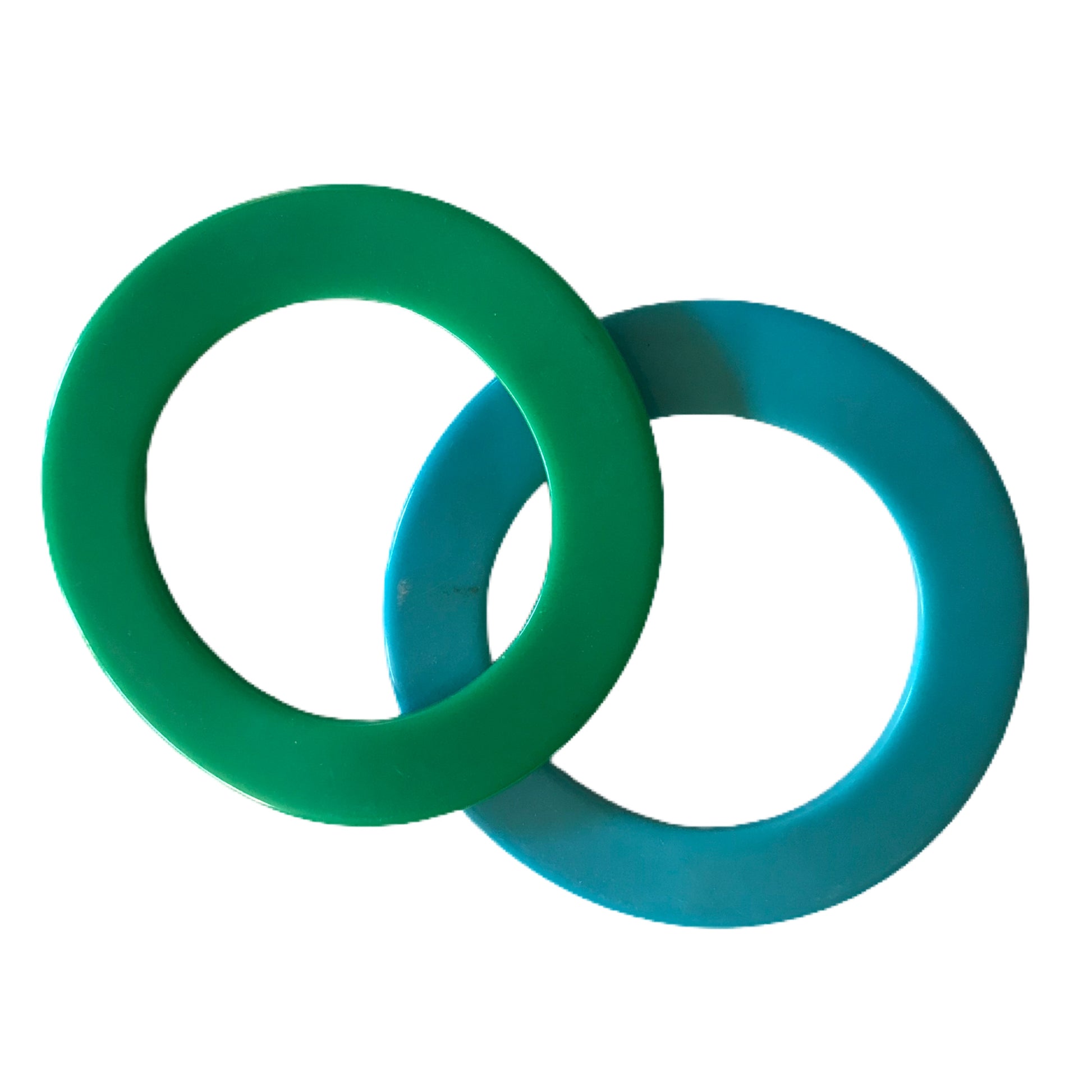 Pair Wavy Plastic Blue & Green Bracelets circa 1980s