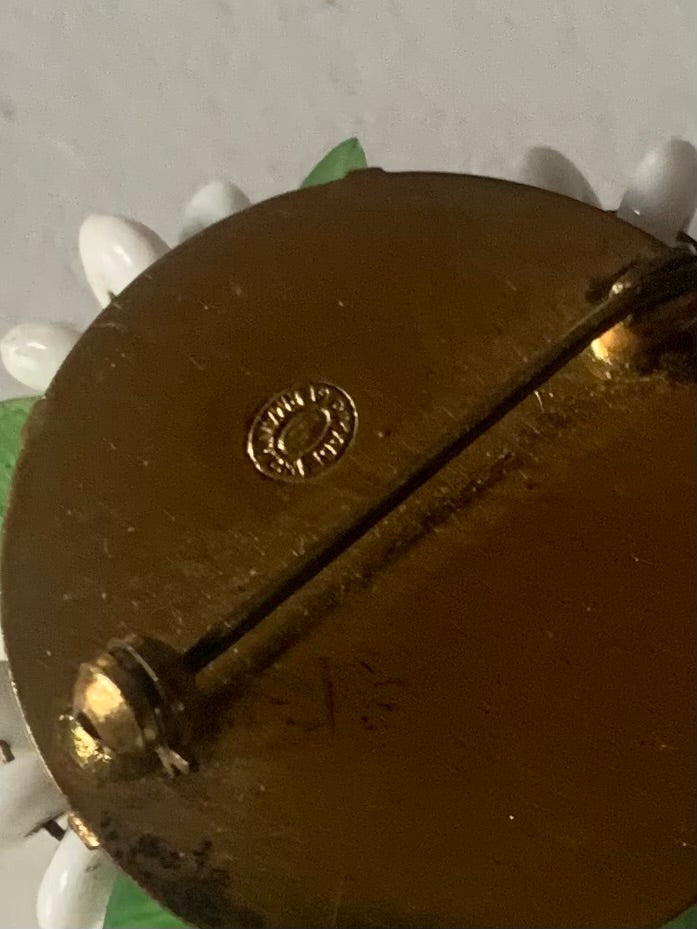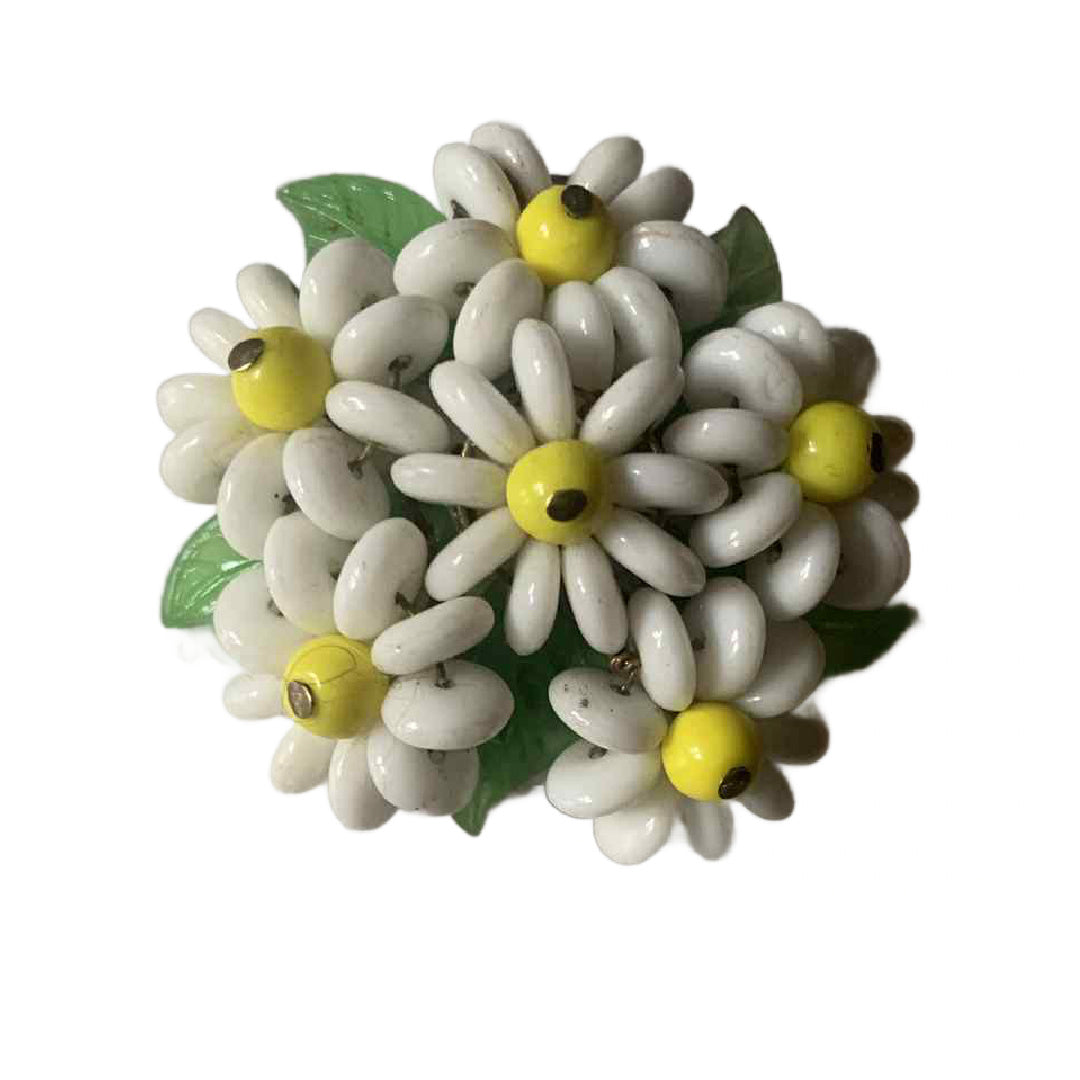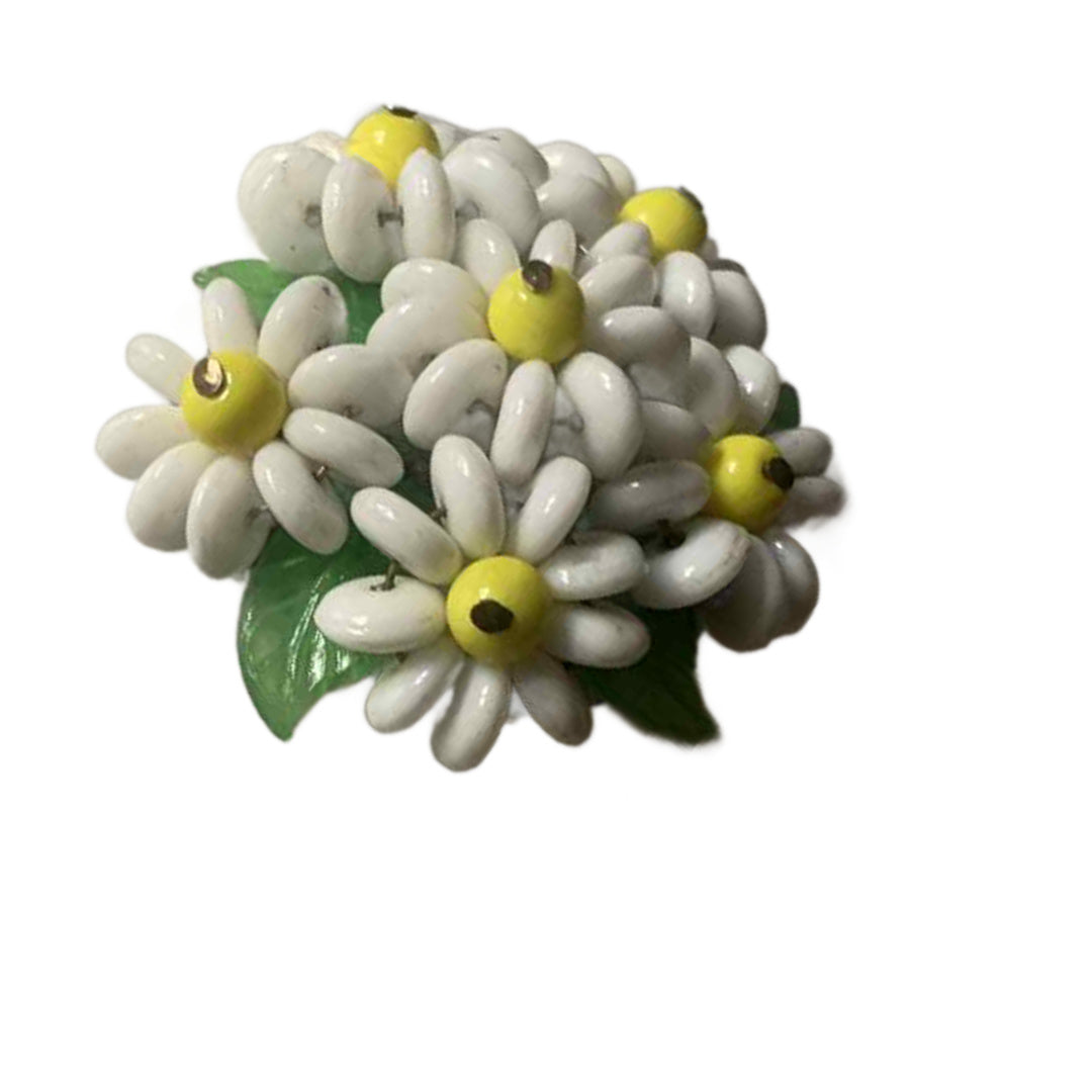 Glass daisy and leaf bouquet brooch from the 1930s-40s, from West Germany. 2". No flaws.