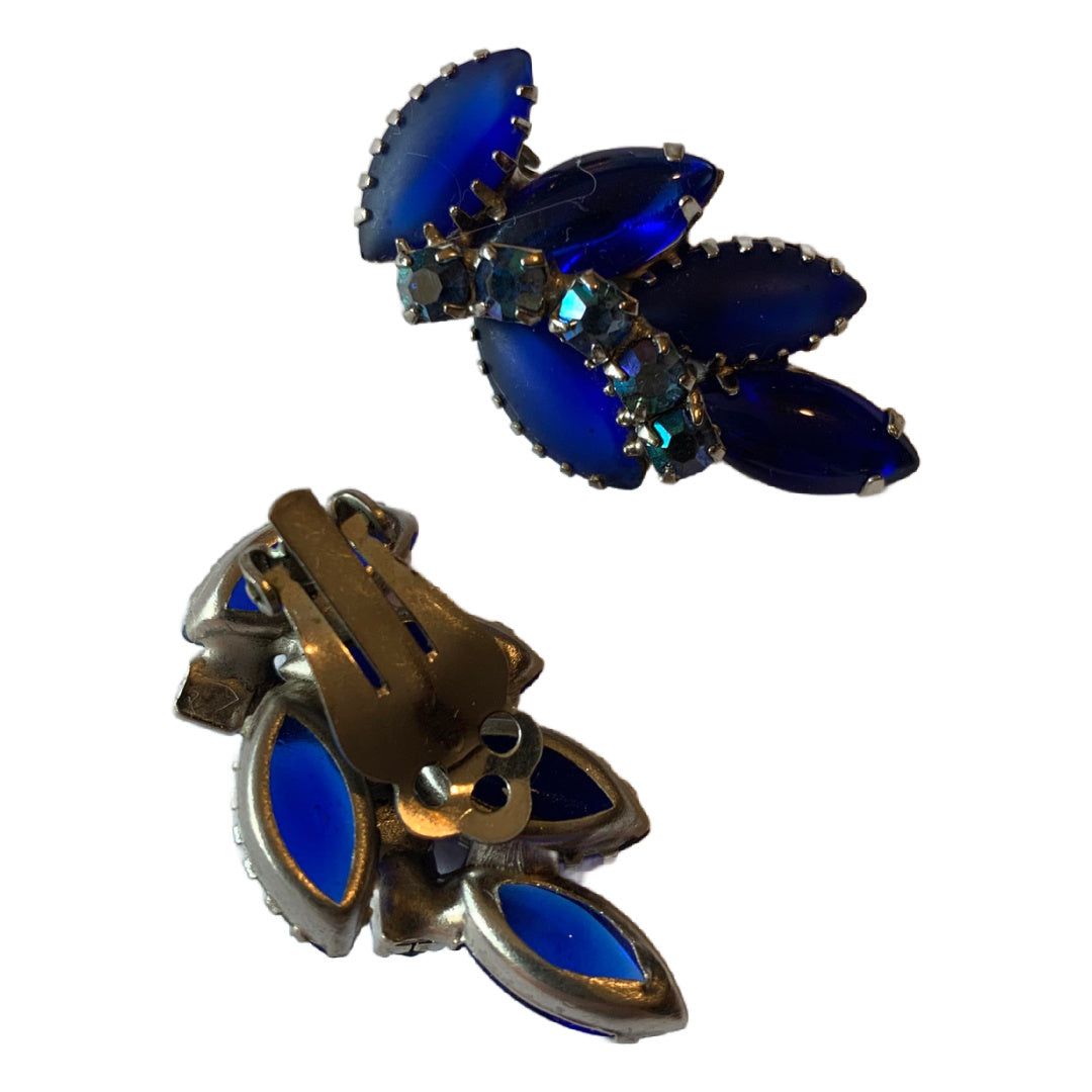 Deep Blue Crystal and Rhinestone Clip Earrings circa 1960s