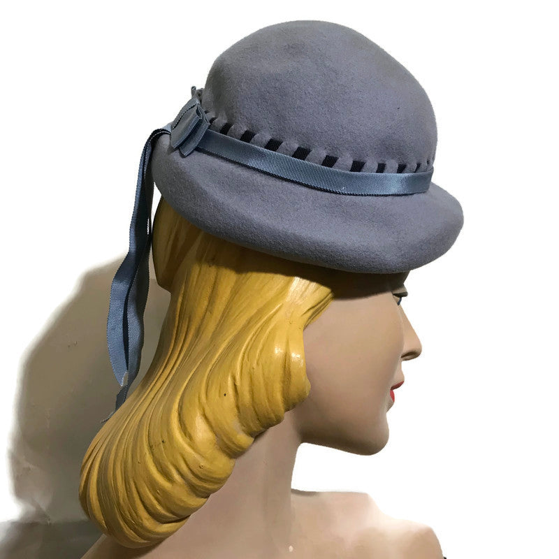 Delft Blue Rounded Crown Tilt Hat w/ Ribbon Trim circa 1940s