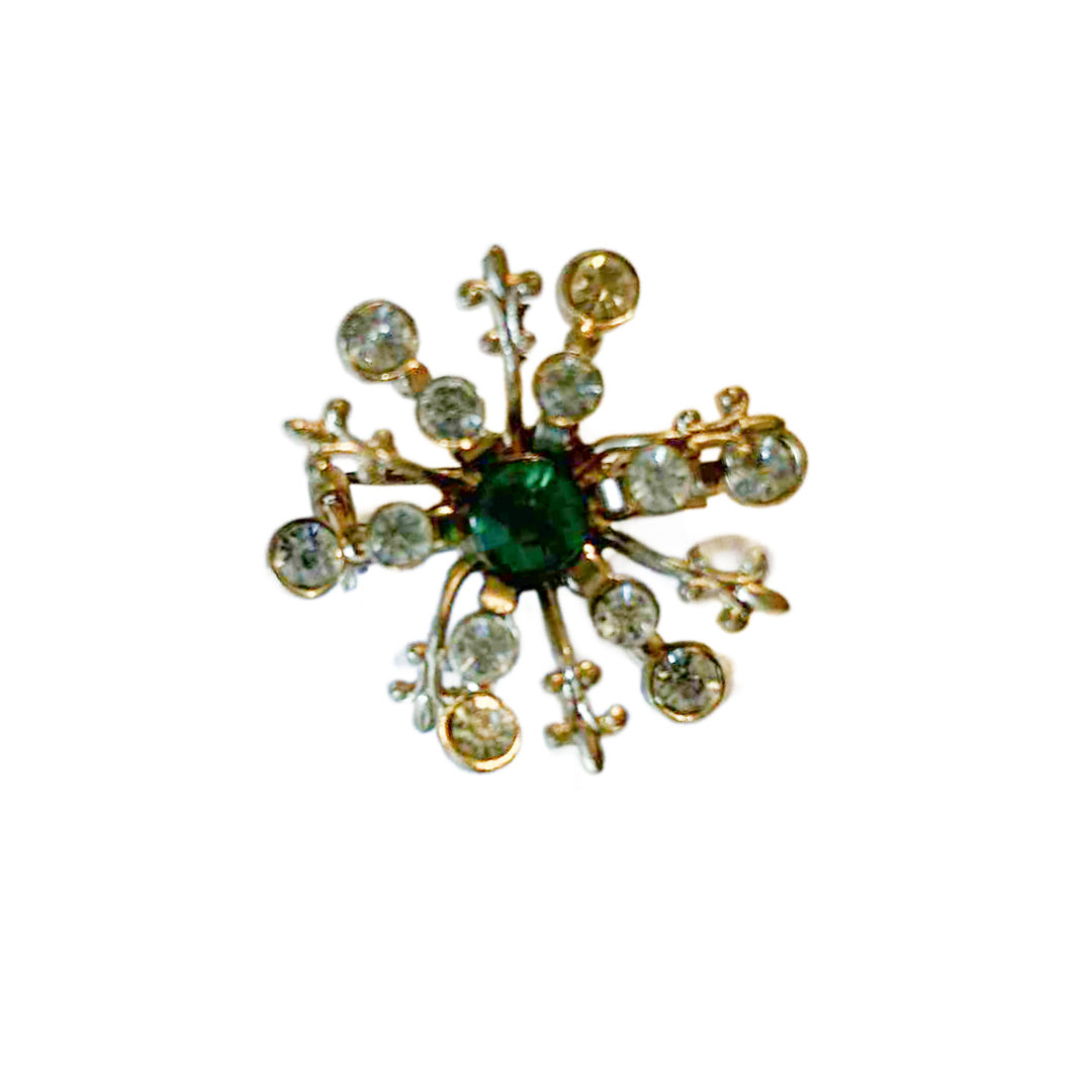 Emerald Green Rhinestone Snowflake Brooch with Fleur de Lis circa 1950s