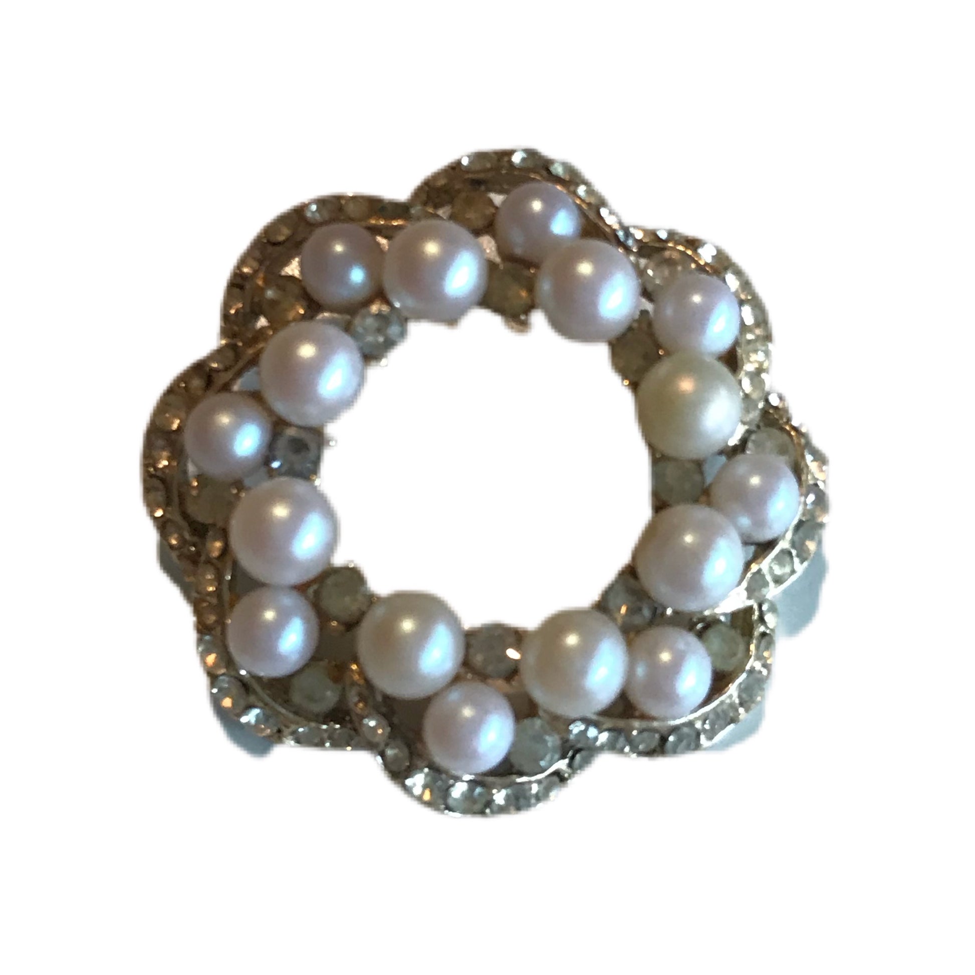 Faux Pearl and Clear Rhinestone Sparkling Wreath Brooch circa 1950s