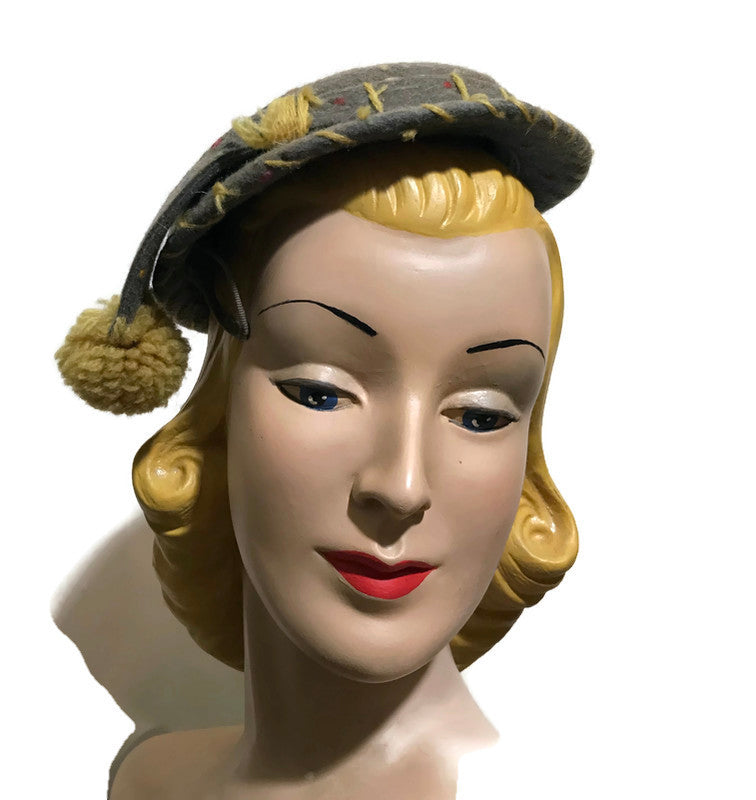 Felted Confetti Fleck Hat with Pom Pom circa 1930s