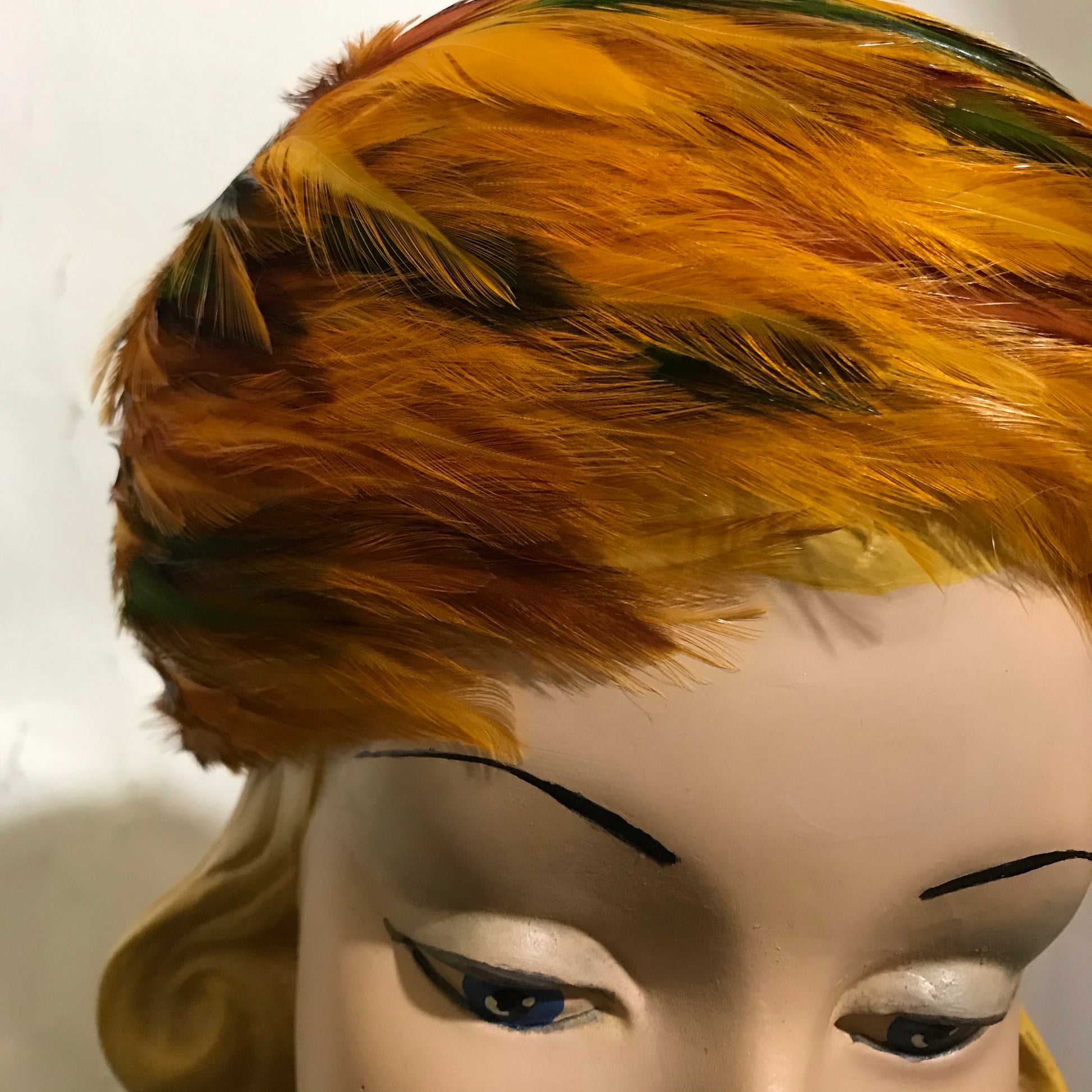 Fiery Orange and Yellow Feathered Hat circa 1960s