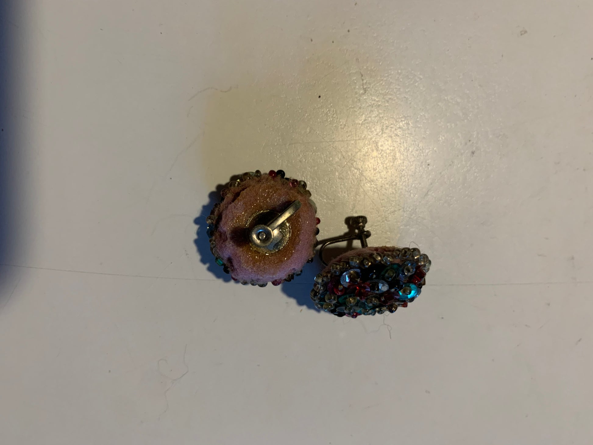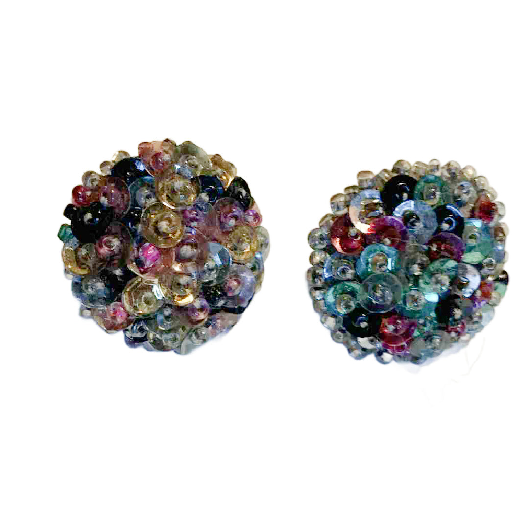 1940s rainbow gelatin sequin clip earrings, hand made. 3/4"