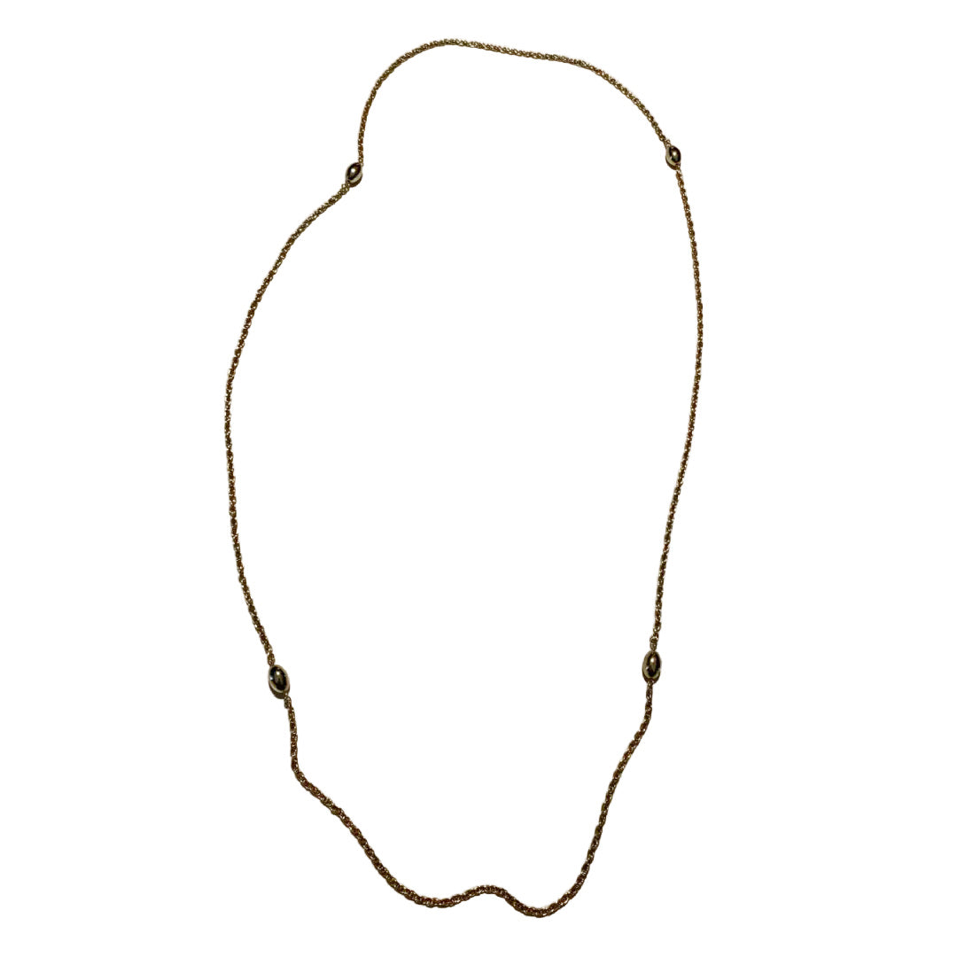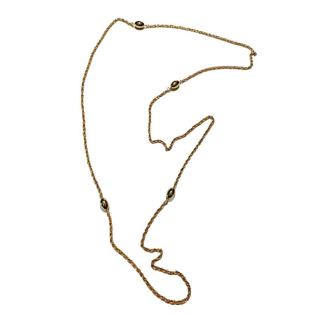 Gold Tone Chain and Oval Bead Long Layering Necklace circa 1970s