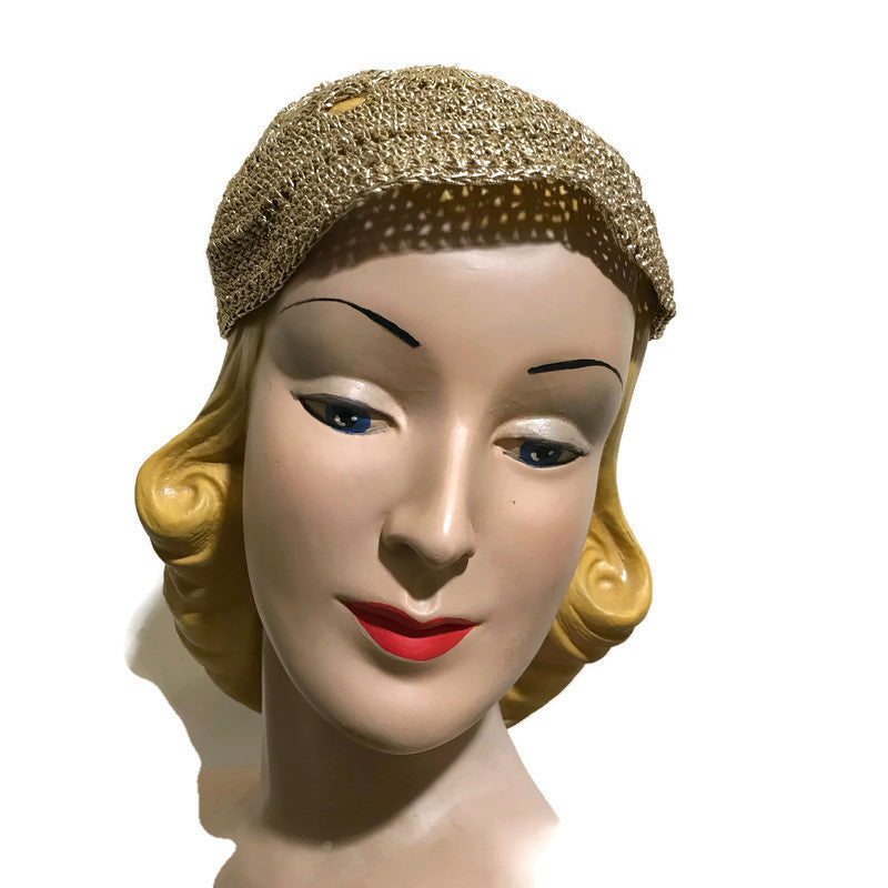 Golden Woven Metallic Cord Cap Hat circa 1930s