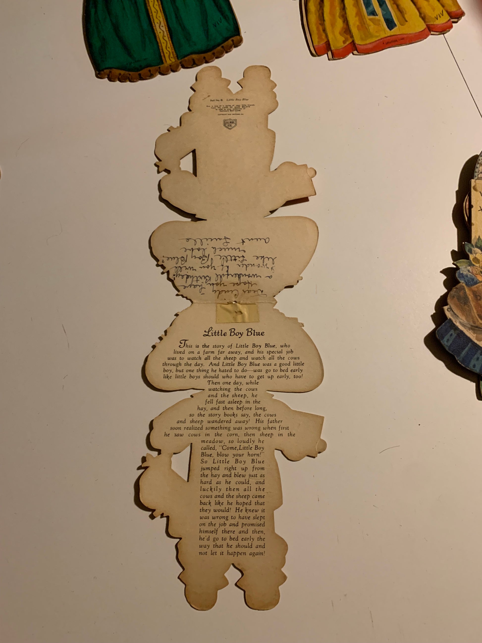Little Boy Blue Doll No. 8- taped at top inside, written in