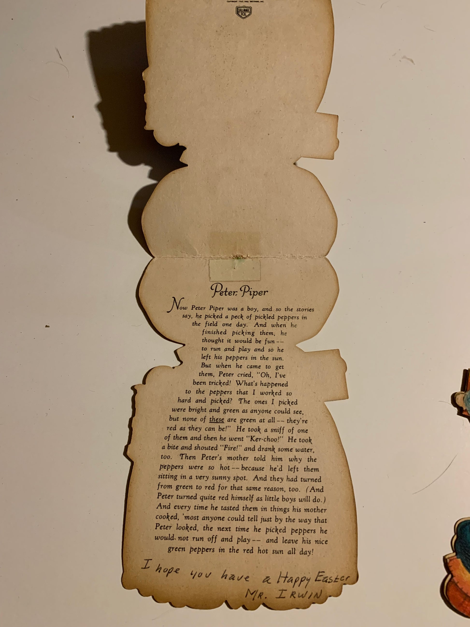 Peter Piper Doll No. 16- taped inside at top, has some writing