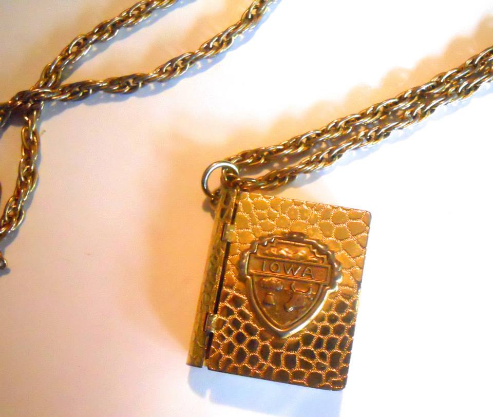 Iowa State Souvenir Necklace Fort Dodge Photo Book Locket circa 1960s