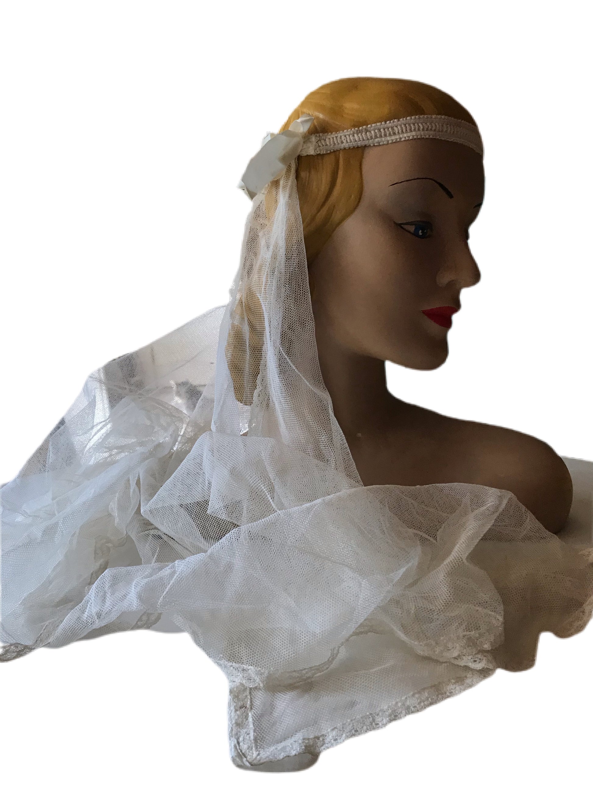 Ivory Lace and Mesh Headband Style Wedding Veil circa 1920s