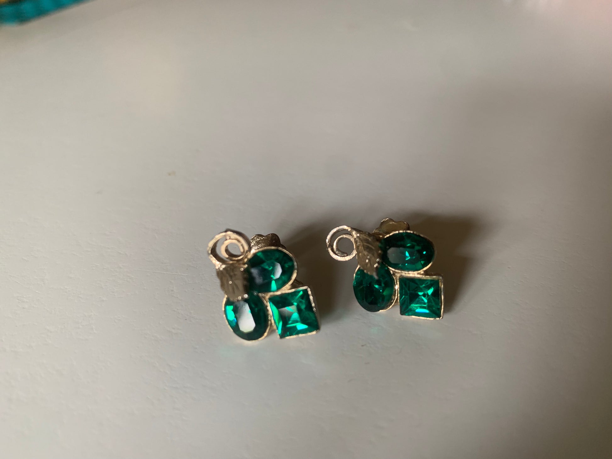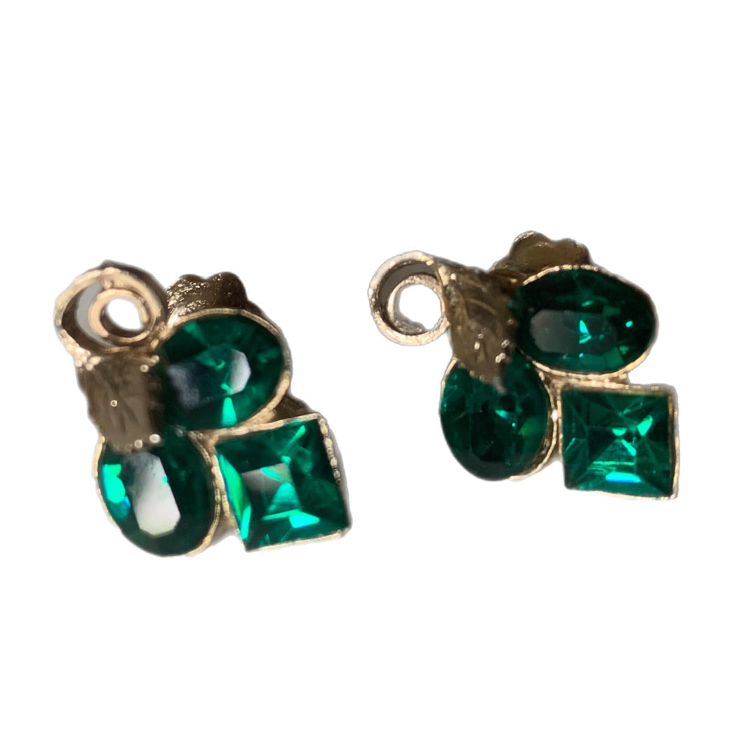Kelly Green Rhinestone Clip Earrings circa 1940s
