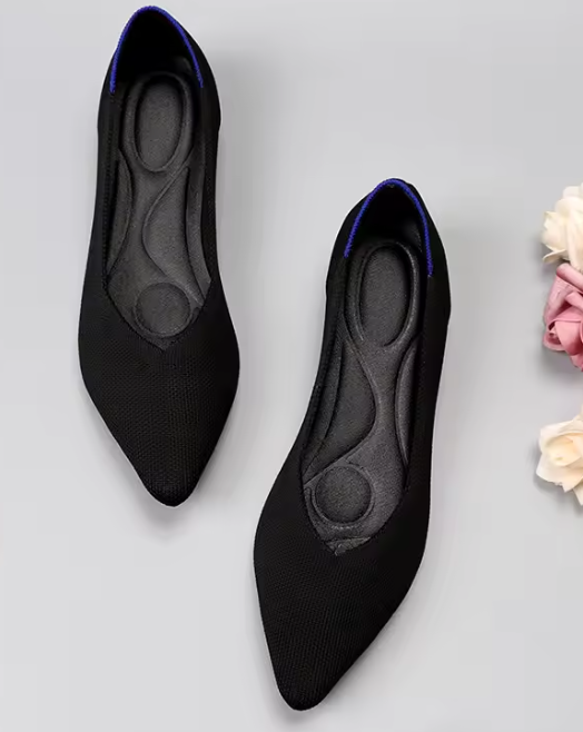 MODERN 1960s inspired pointed toe breathable fabric flats. 2-3 week delivery.