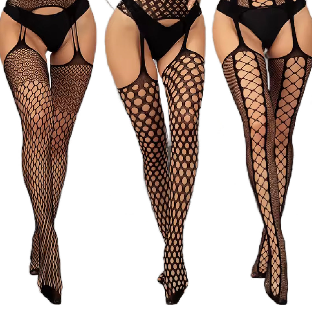 Lorna- the Black Fishnet Thigh Stocking Garter Combo 3 Styles
