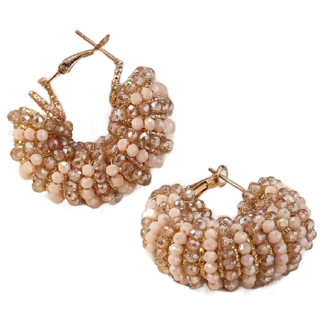1 1/4 metal and glass bead mini hoop earrings. Modern, 2-3 week delivery.