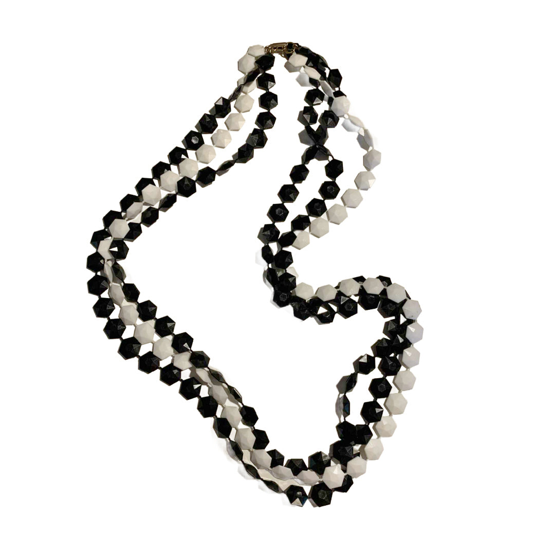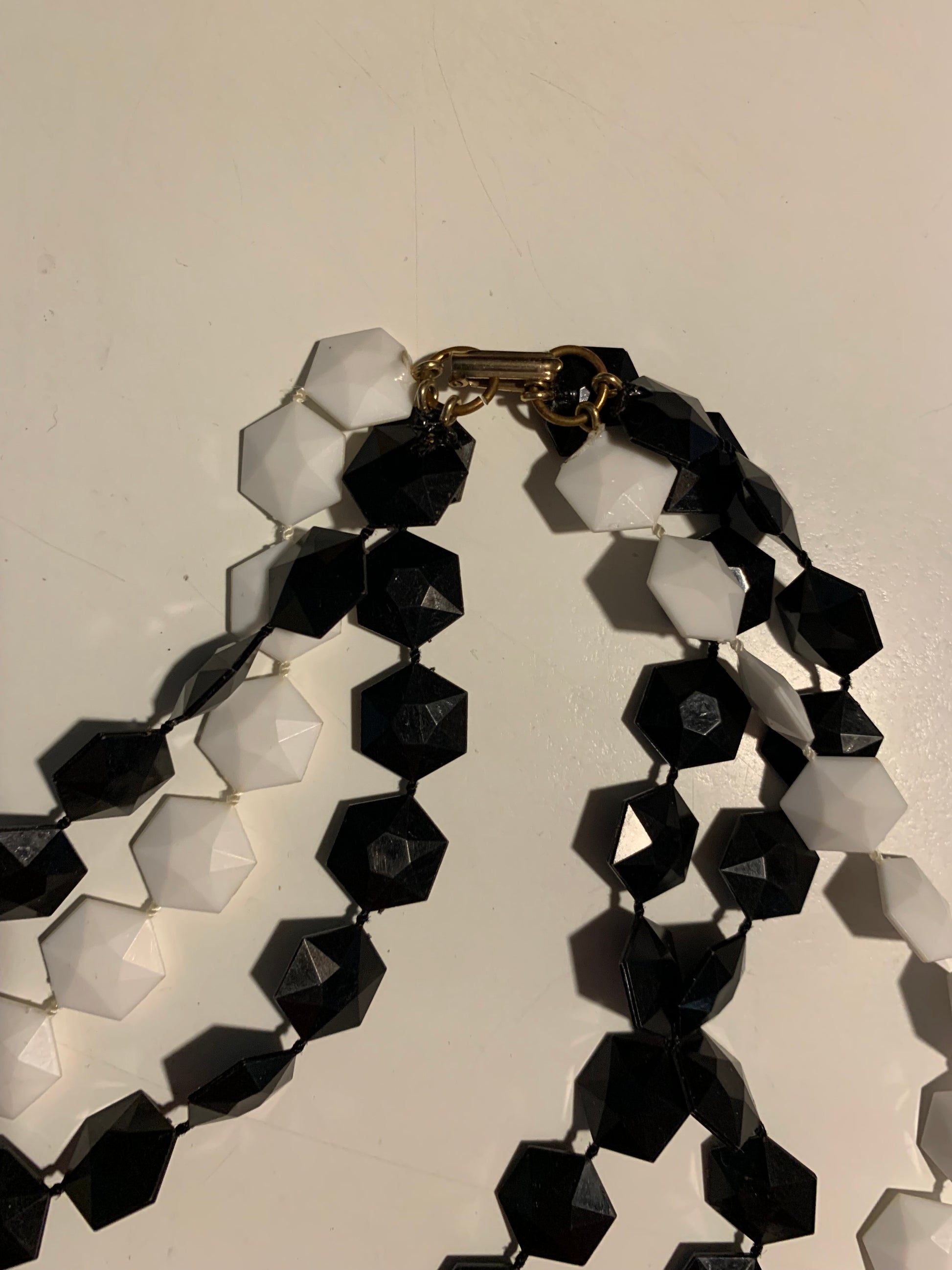 Multistrand Black and White Plastic Geometric Bead Necklace circa 1960s