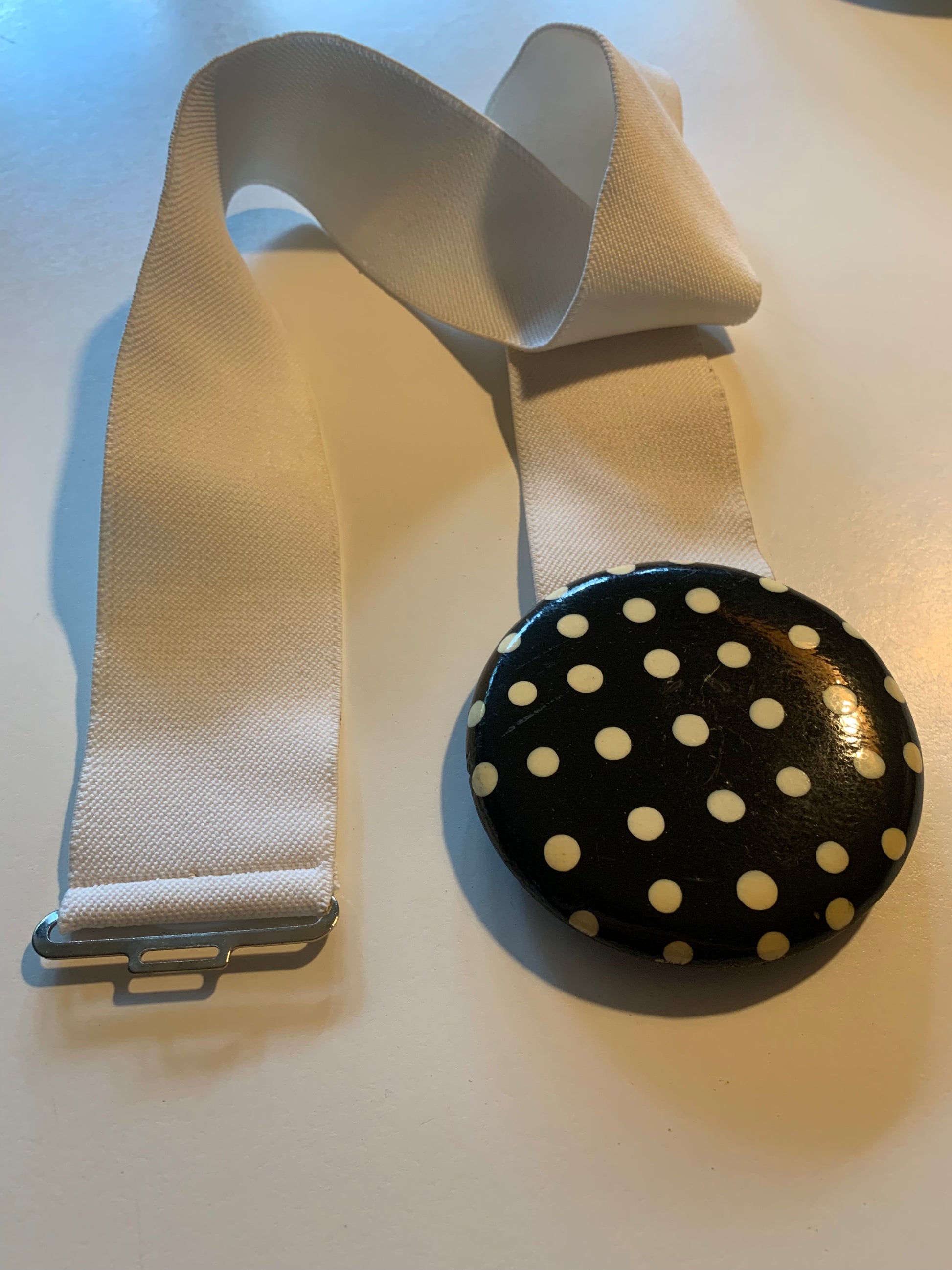 New Wave White Elastic Belt with Polka Dot Clasp circa 1980s