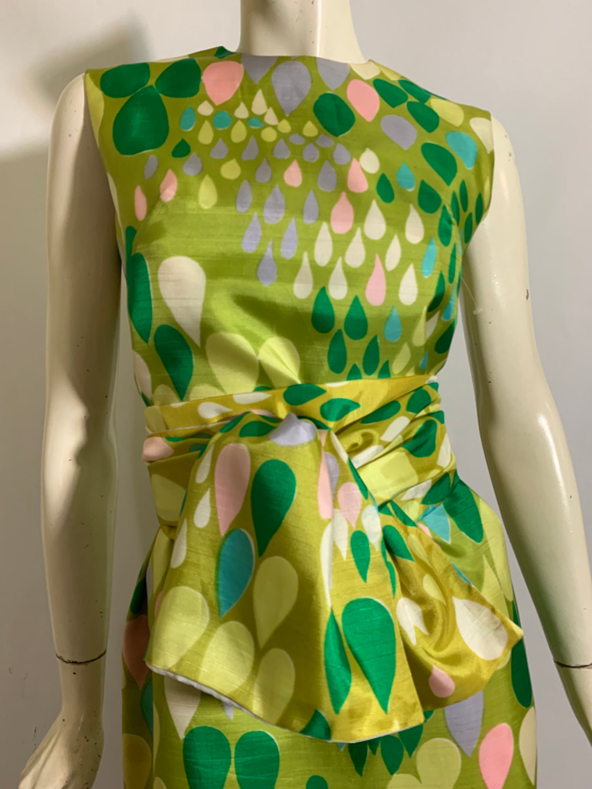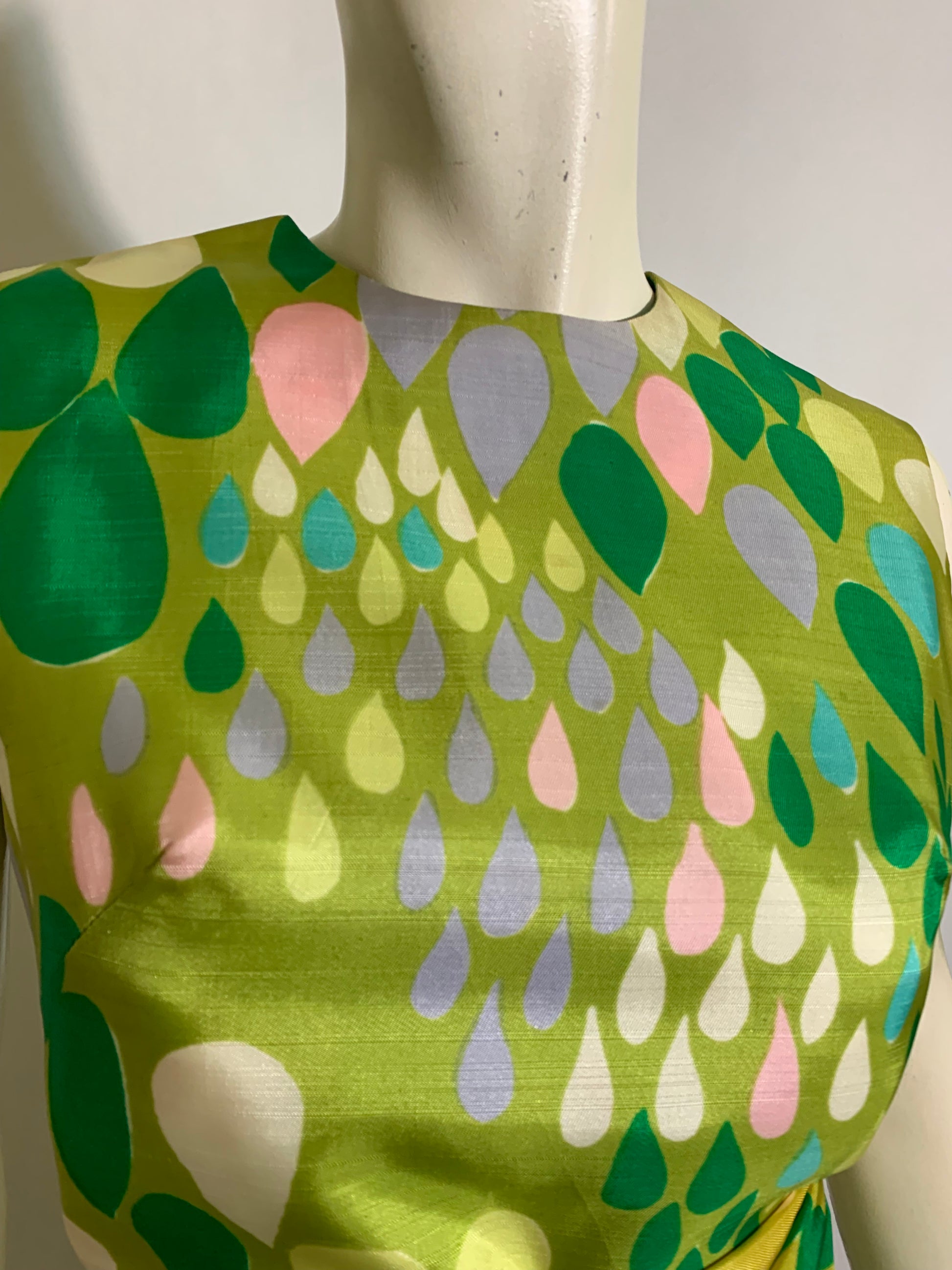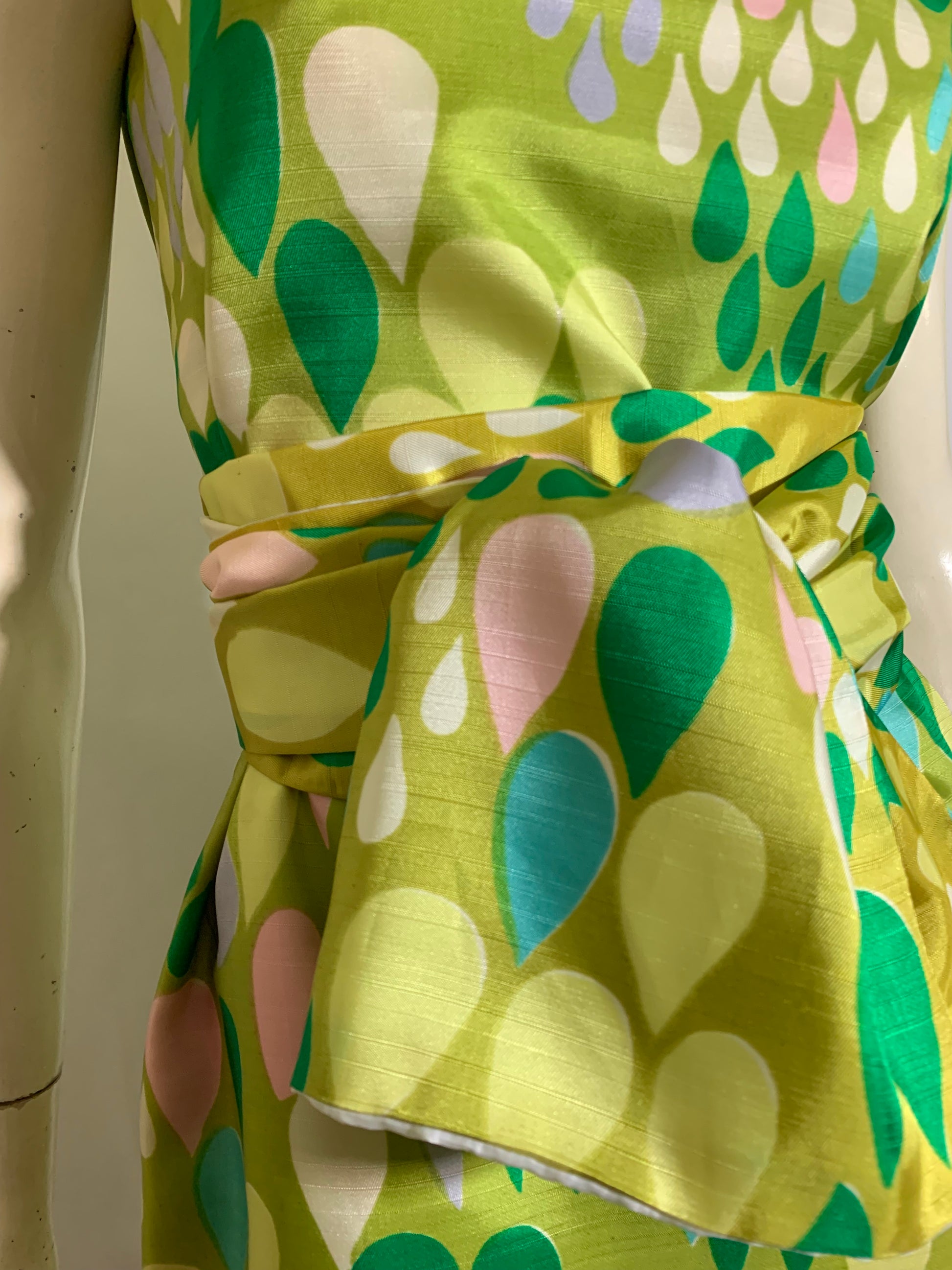 Pastel Raindrop Print Sheath Dress with Sash circa 1960s