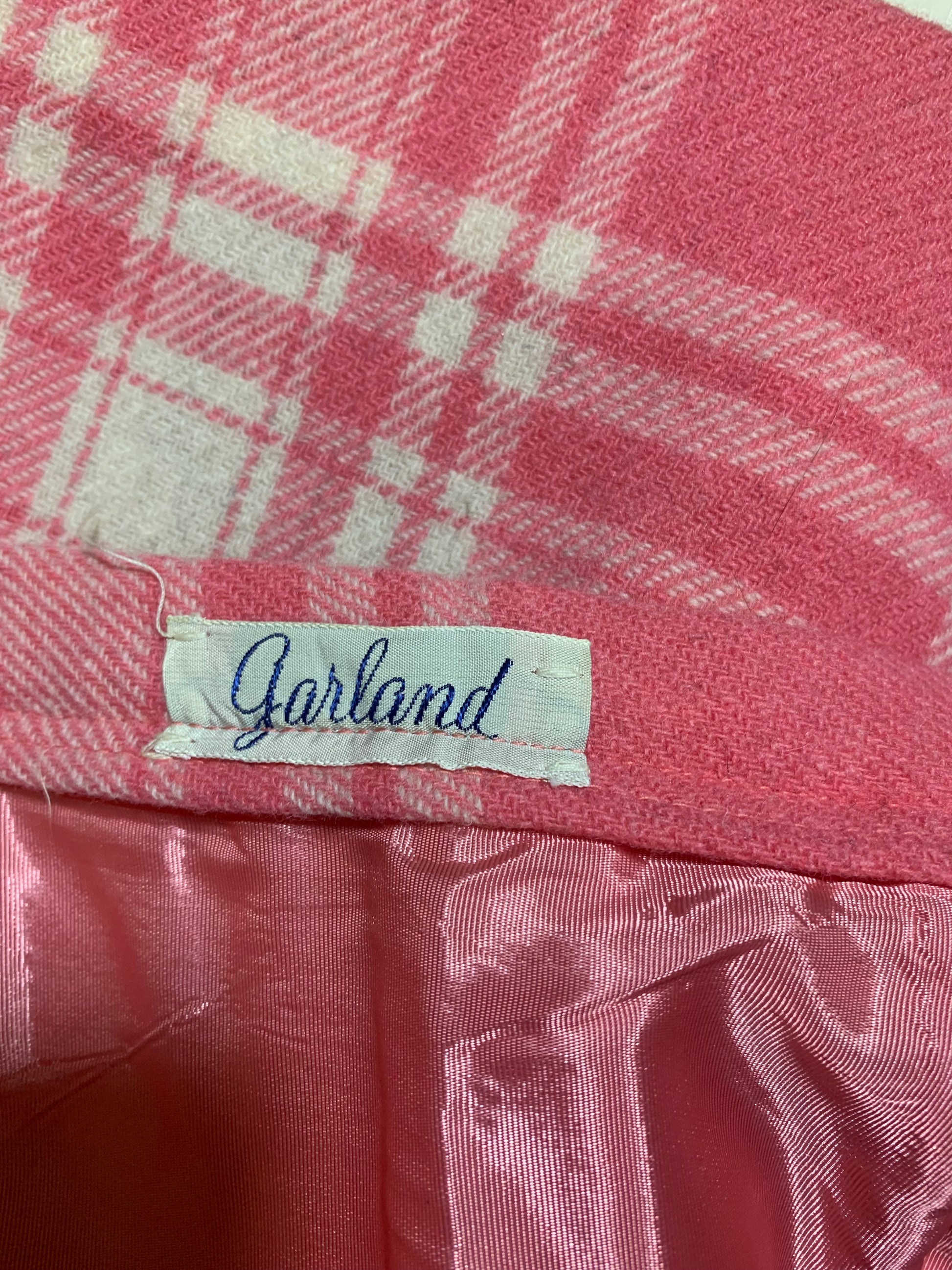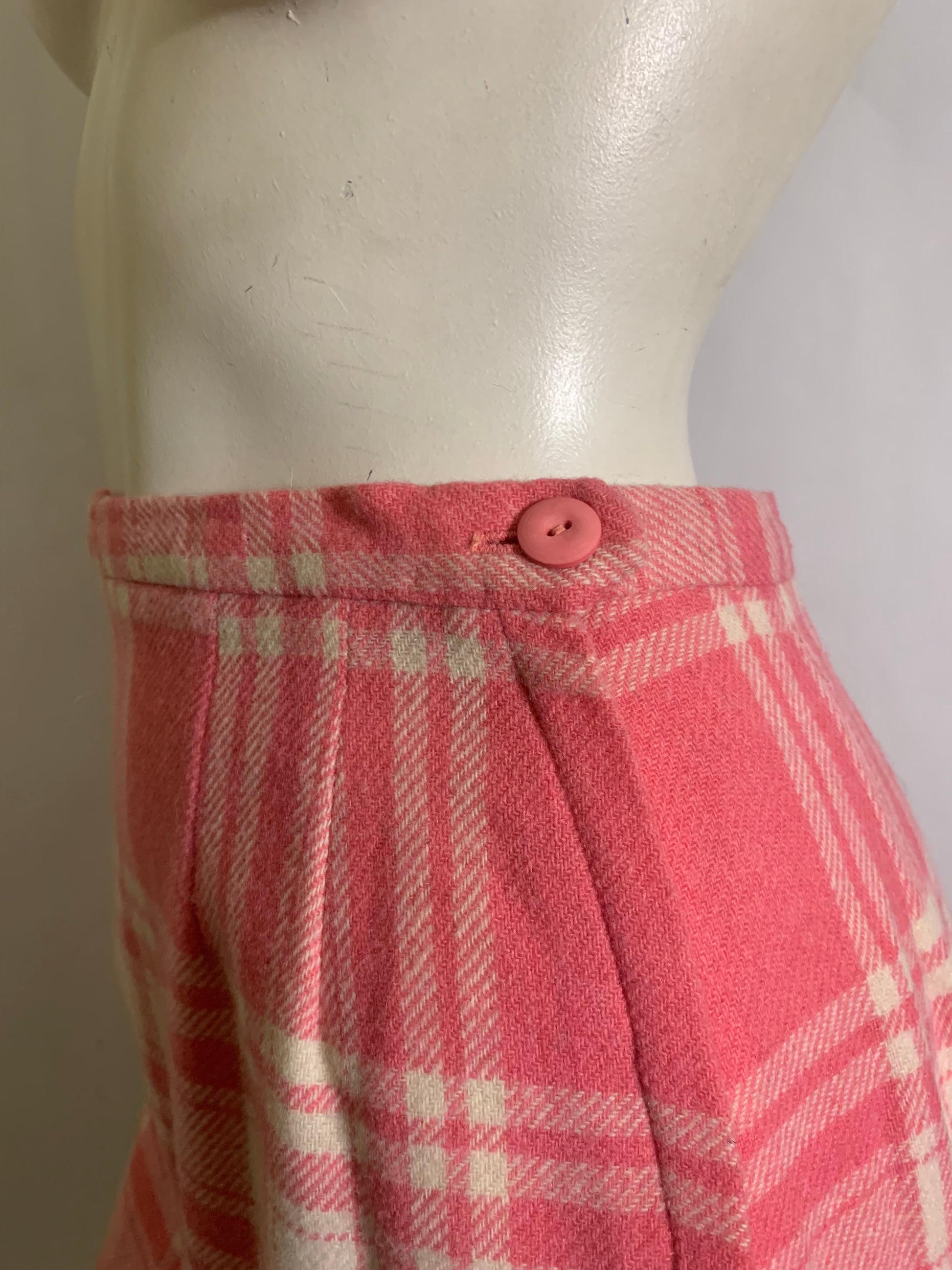 Peony Pink Plaid Wool Pencil Skirt circa 1960s