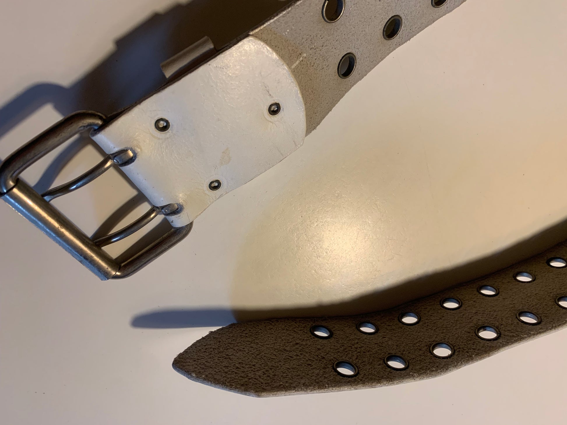 Rock n' Roll White Leather Belt with Grommets circa 1970s