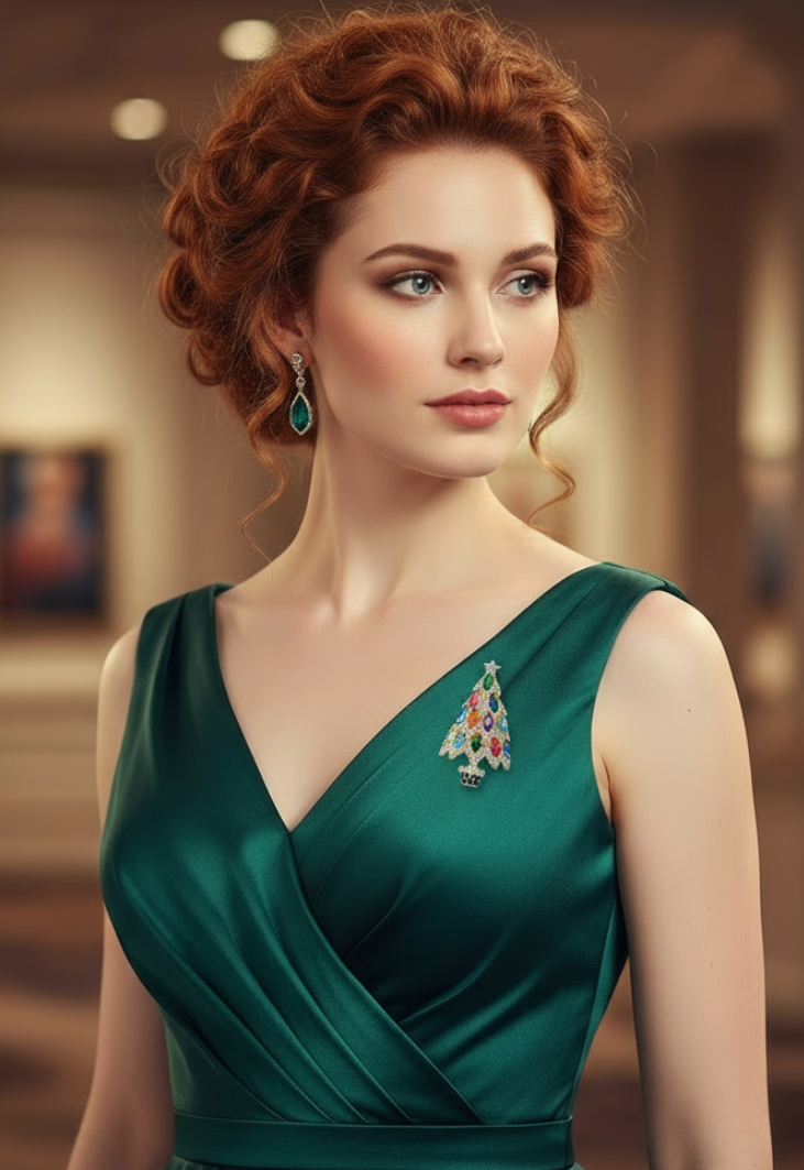 Rosemary- a Modern Christmas Tree Brooch w/ Colored Rhinestones