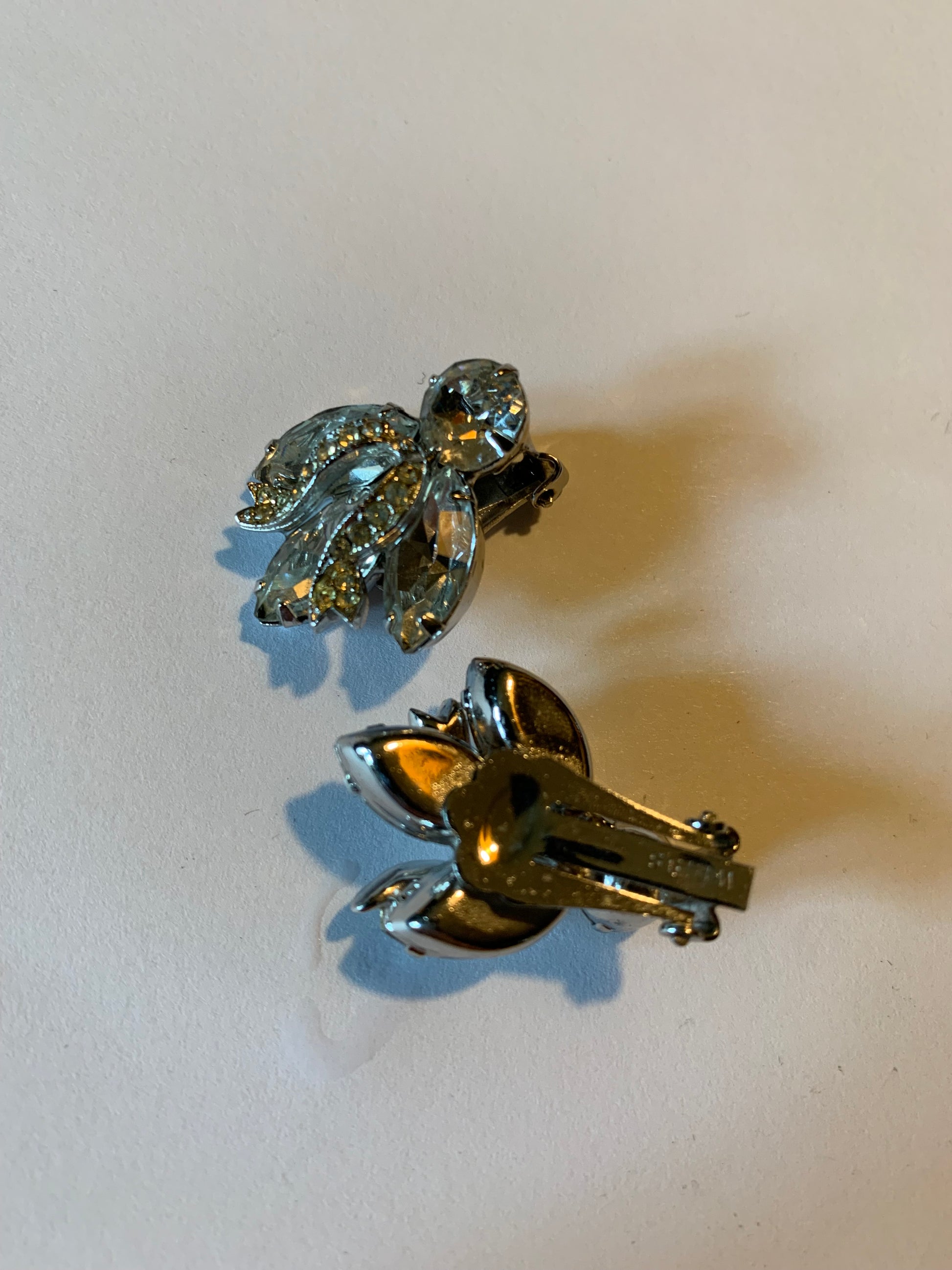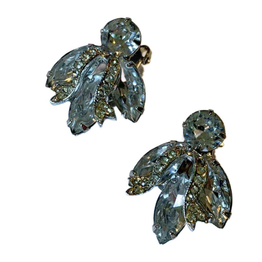 Sparkling Clear Rhinestone Clip Earrings circa 1960s Weiss