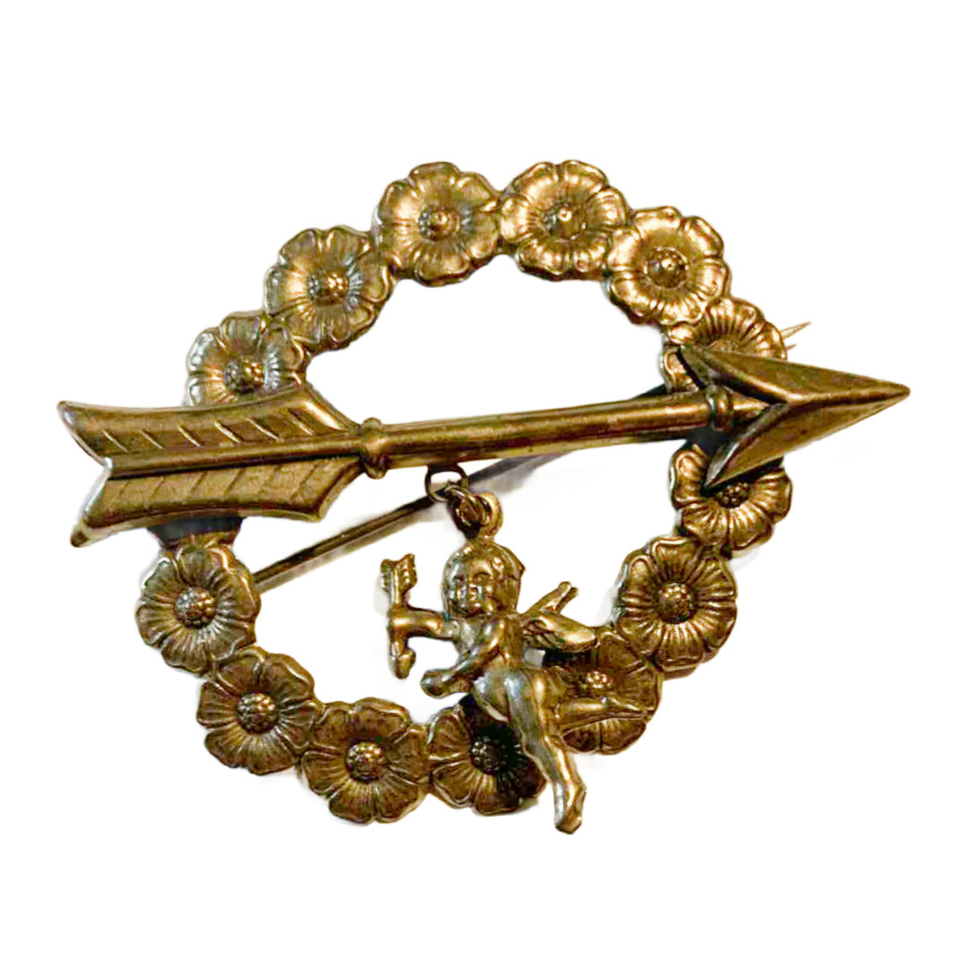 Sweetheart Flower Wreath and Arrow Brooch with Cherub Charm circa 1940s