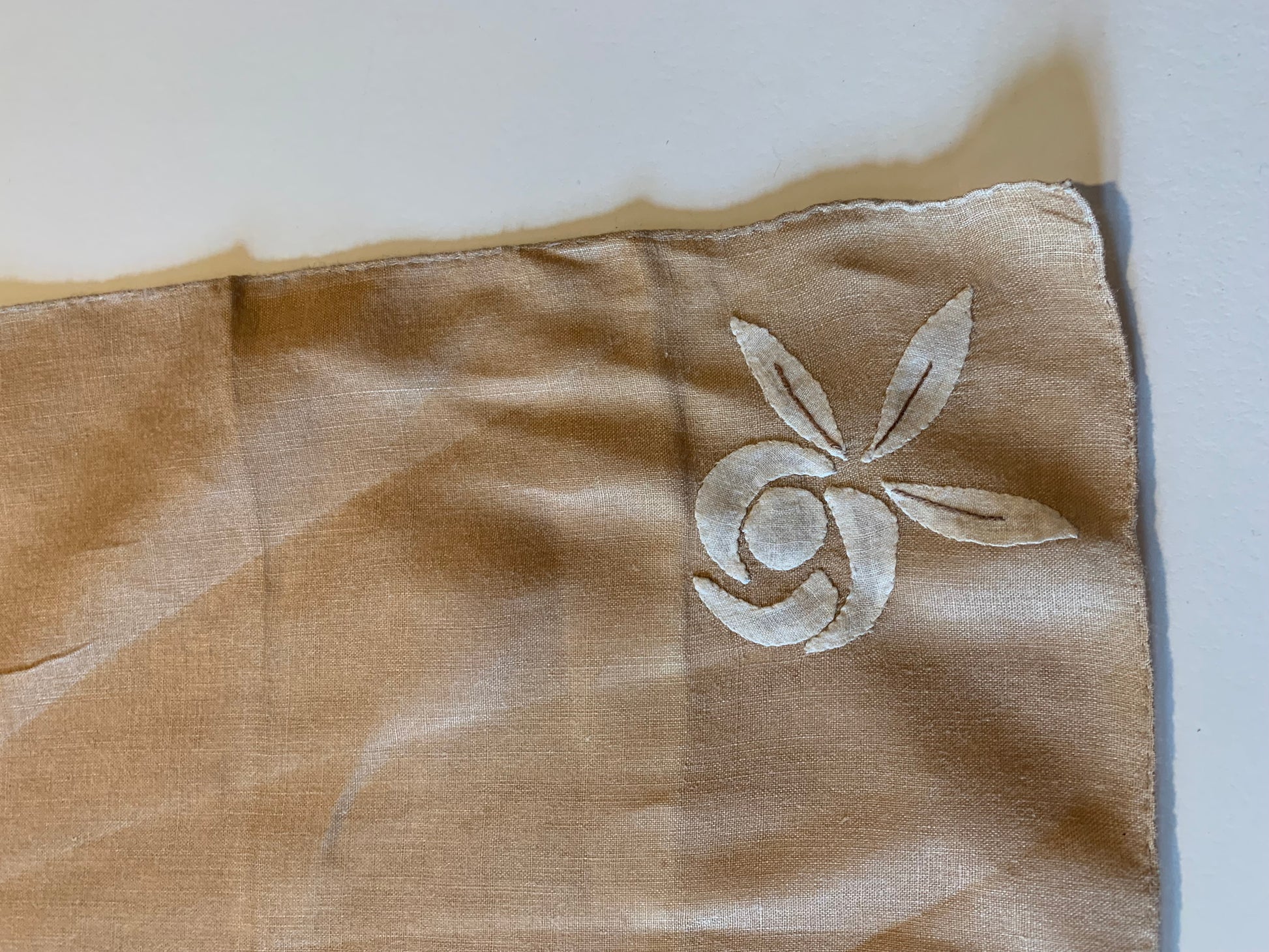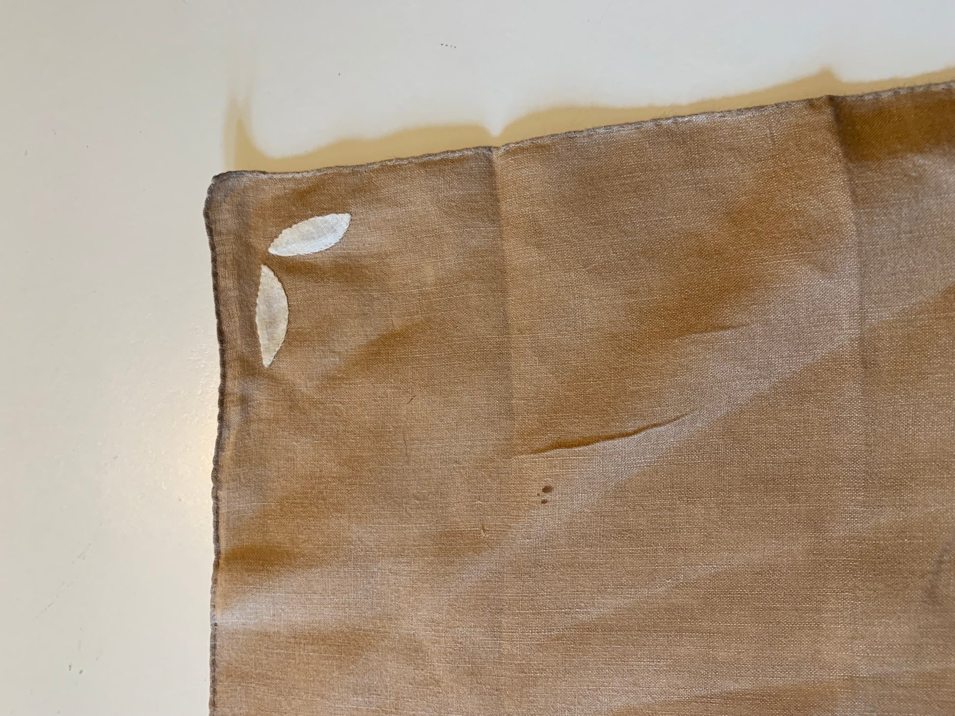 Tan Cotton Handkerchief White Flowers and Leaves circa 1930s