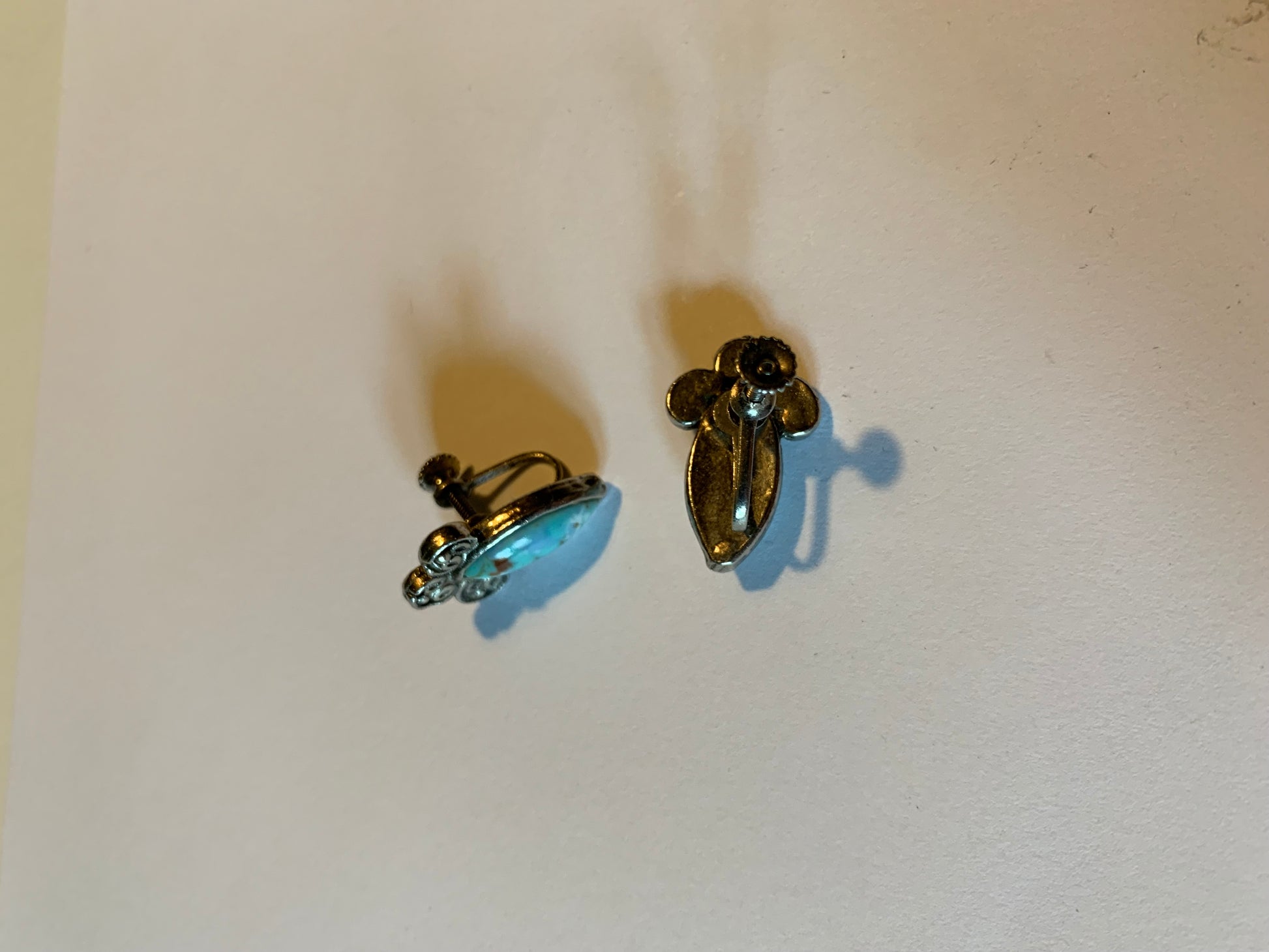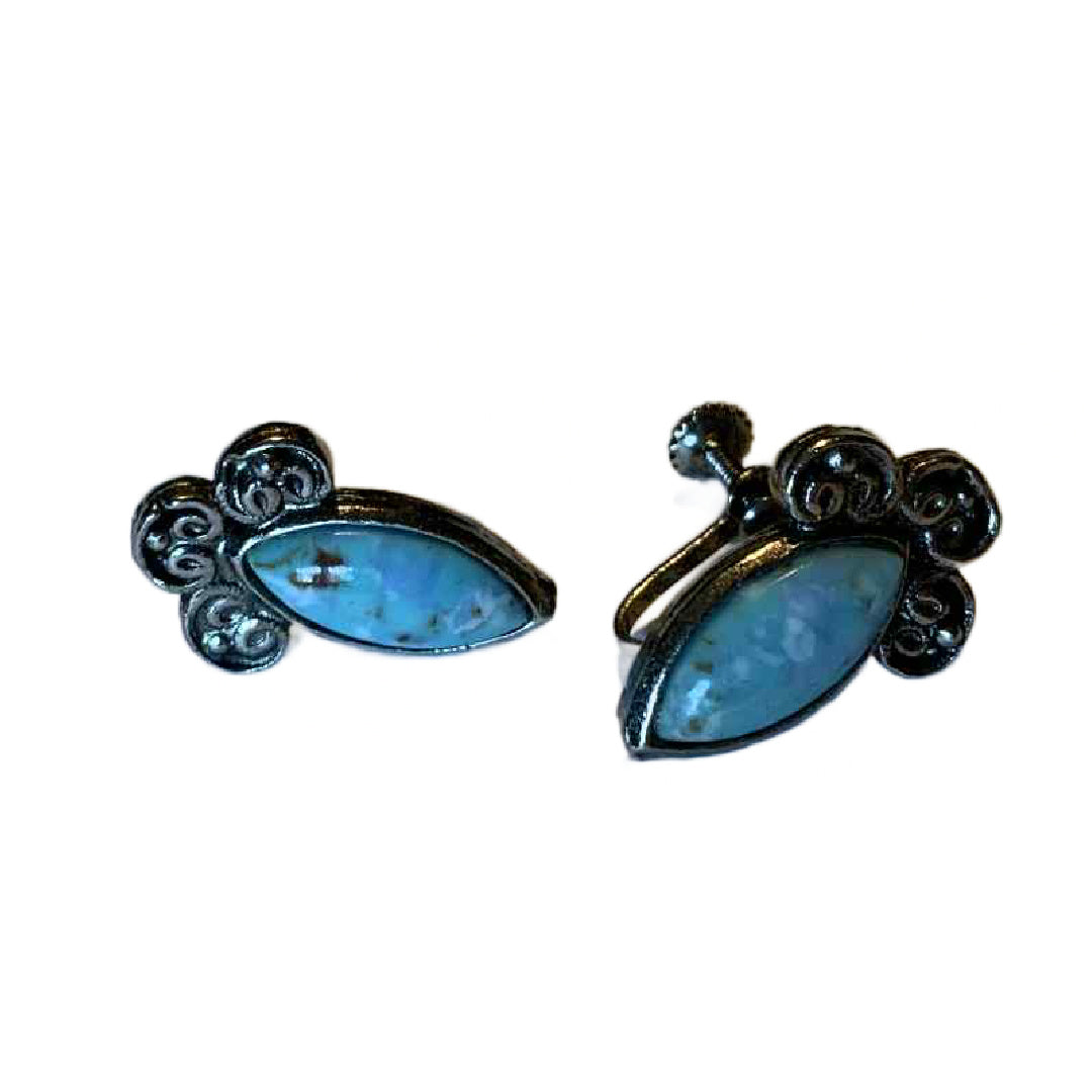 Turquoise Inlay Screwback Clip Earrings circa 1940s