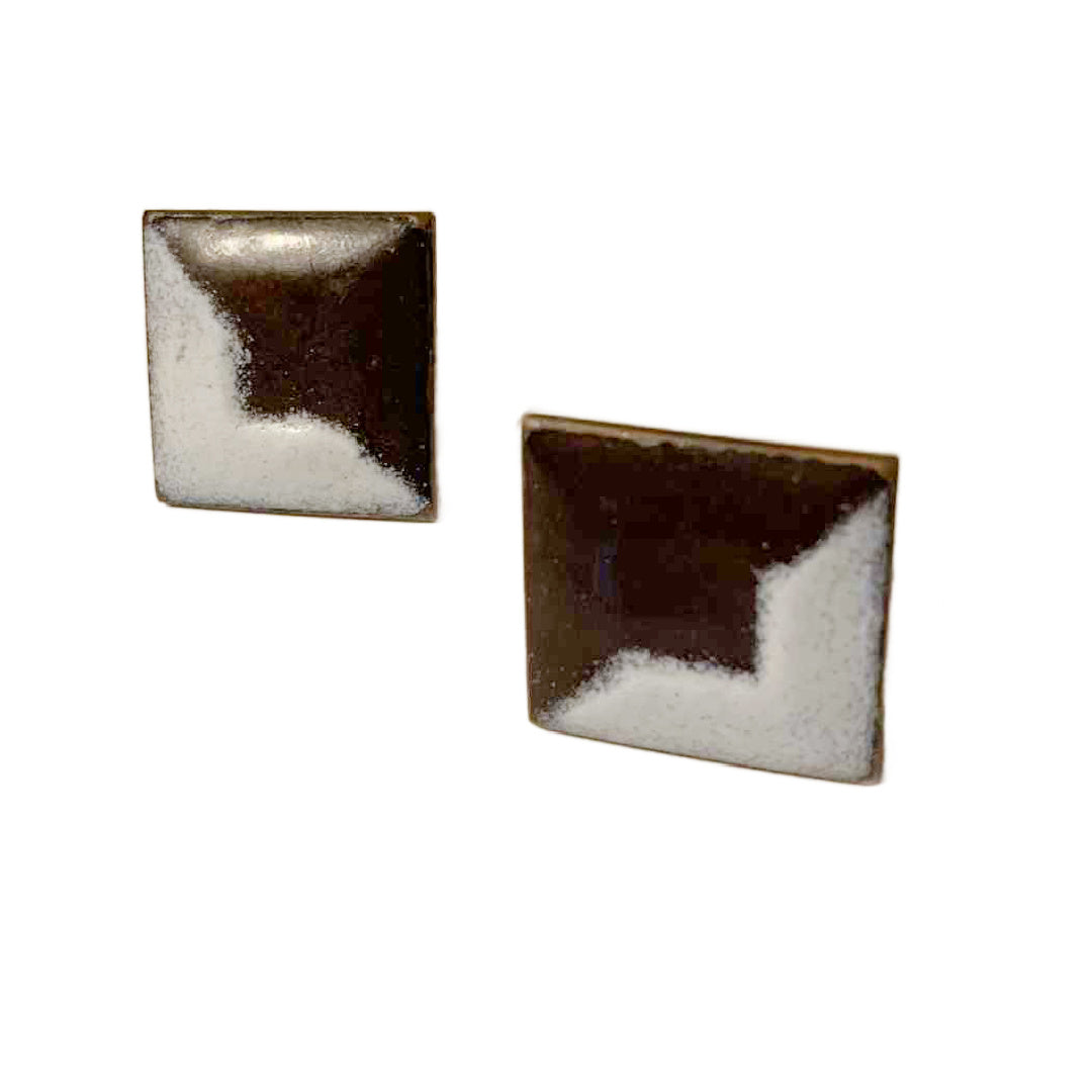 Walnut Brown Two Tone Enameled Copper Square Clip Earrings circa 1940s