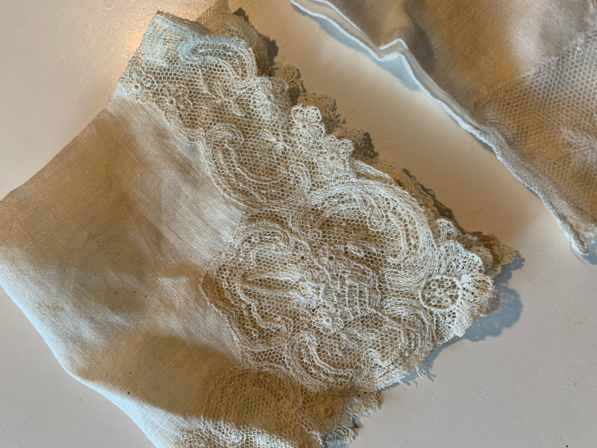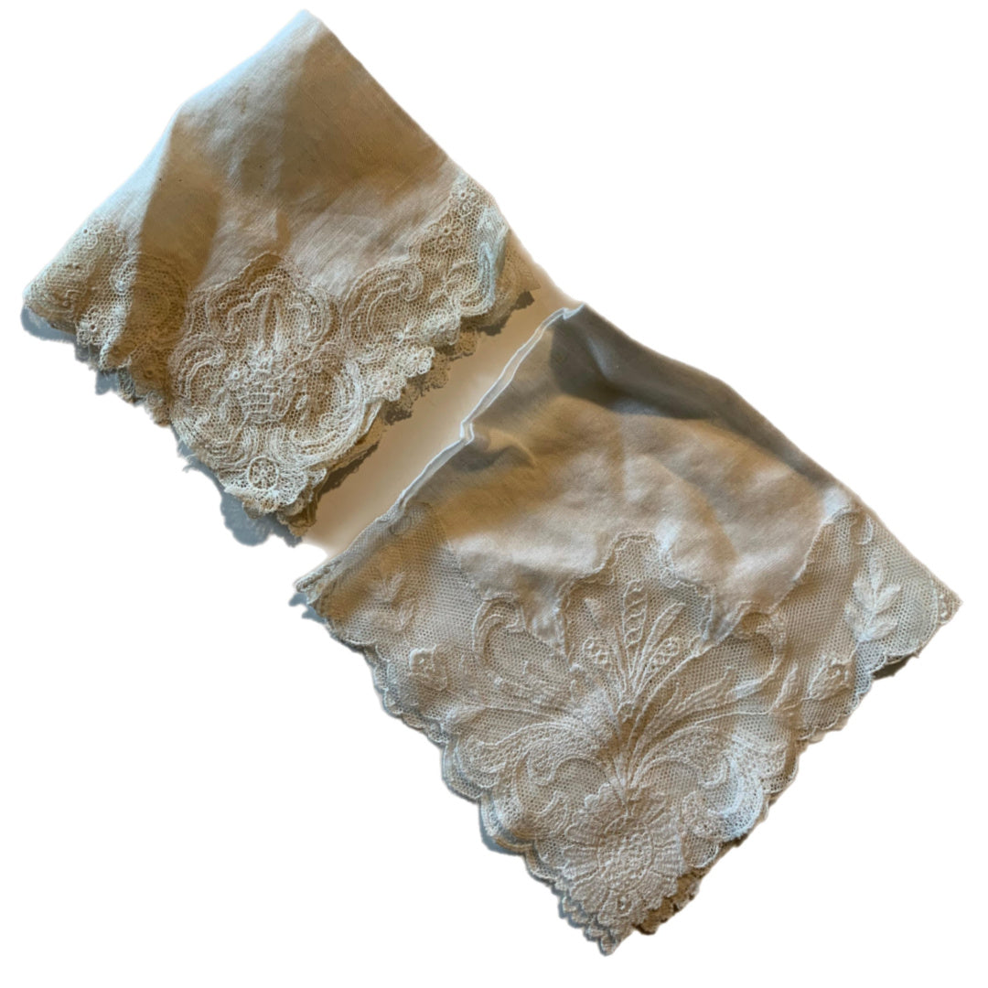 White Lace Trimmed Handkerchiefs Lot 2 circa 1940s