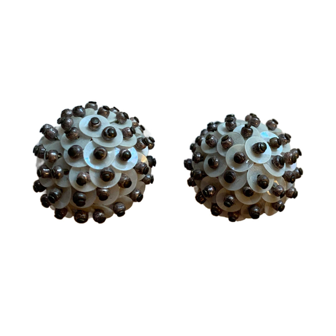 Winter White Gelatin Sequin and Bead Domed Clip Earrings circa 1940s